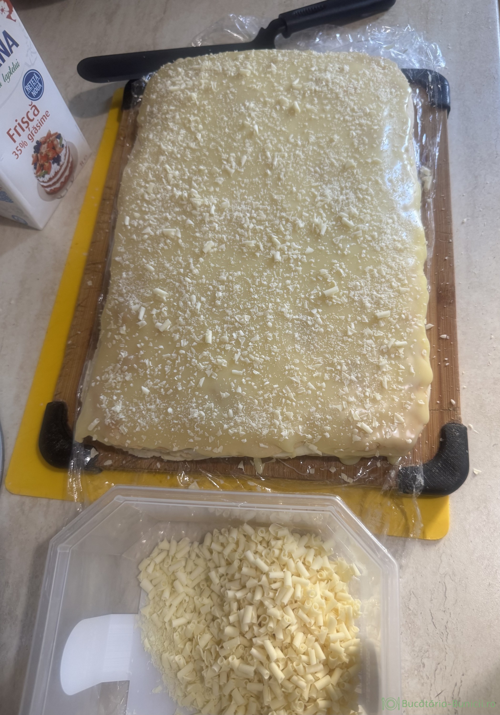 - A doua zi se îndepărtează folia alimentară, care a acoperit prăjitura.