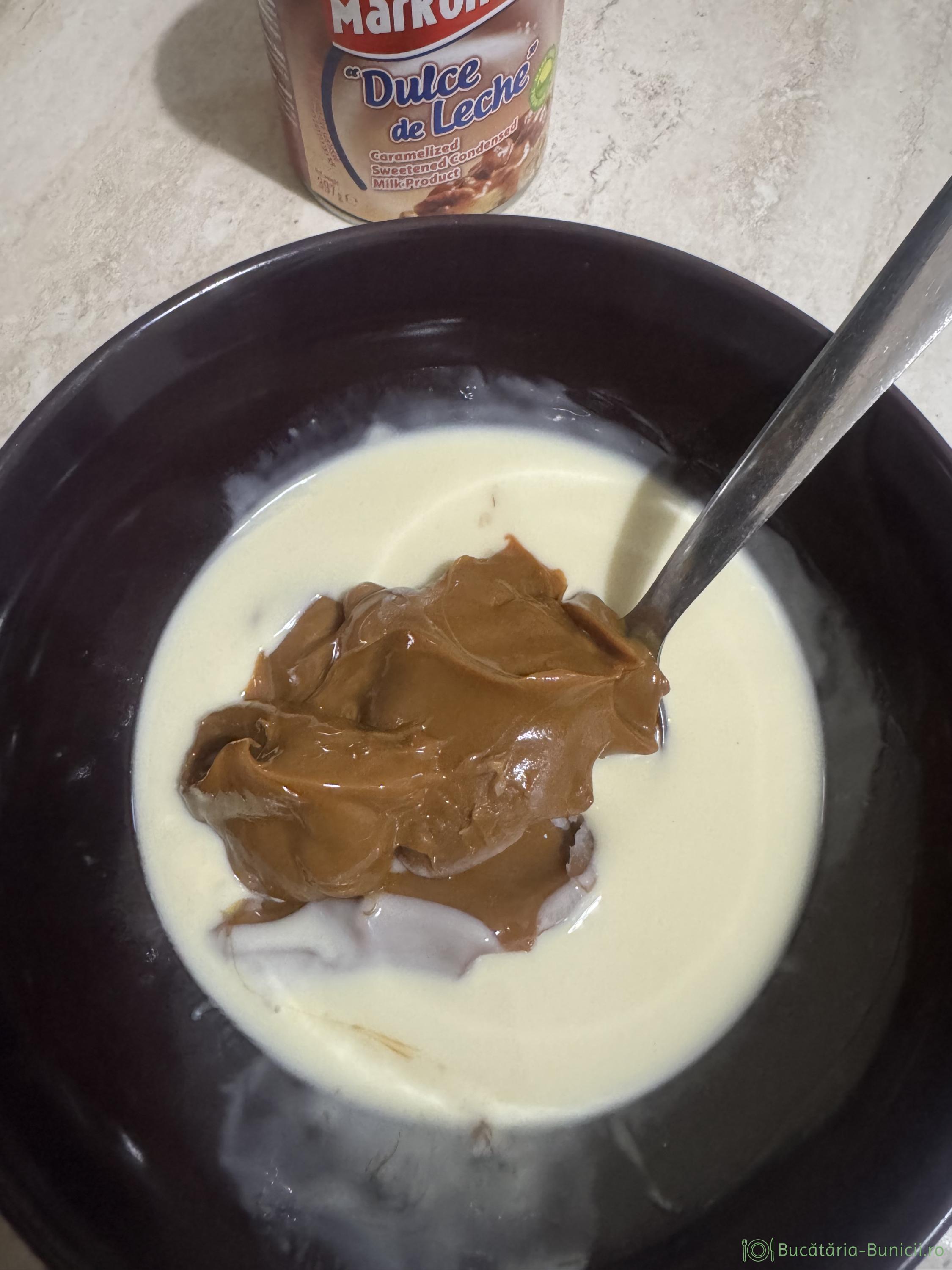 - 150 g dulce de leche (lapte condensat caramelizat din comerț)