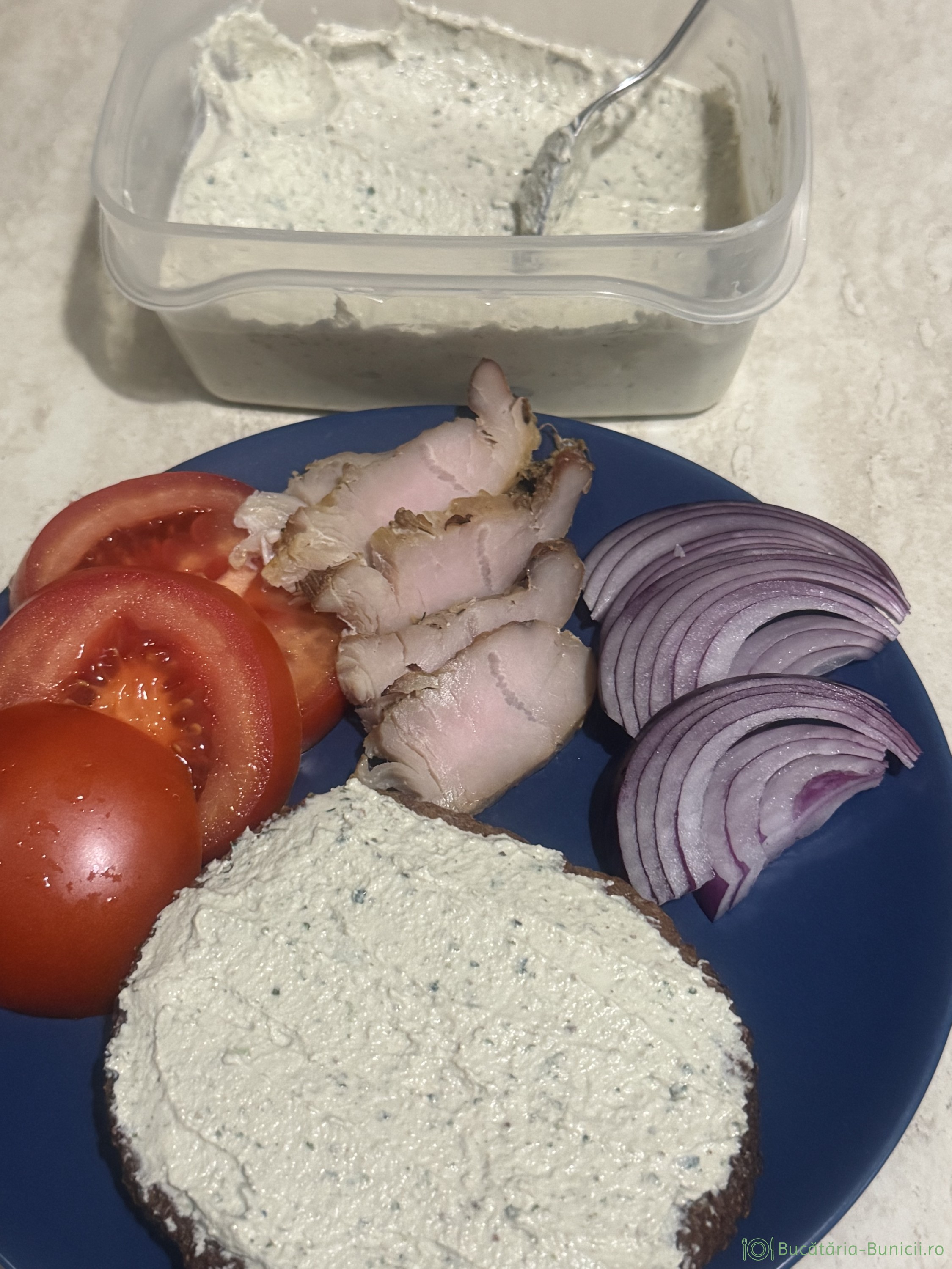 - 100 g brânză degresata grunzoasa cu 0,5% grăsime