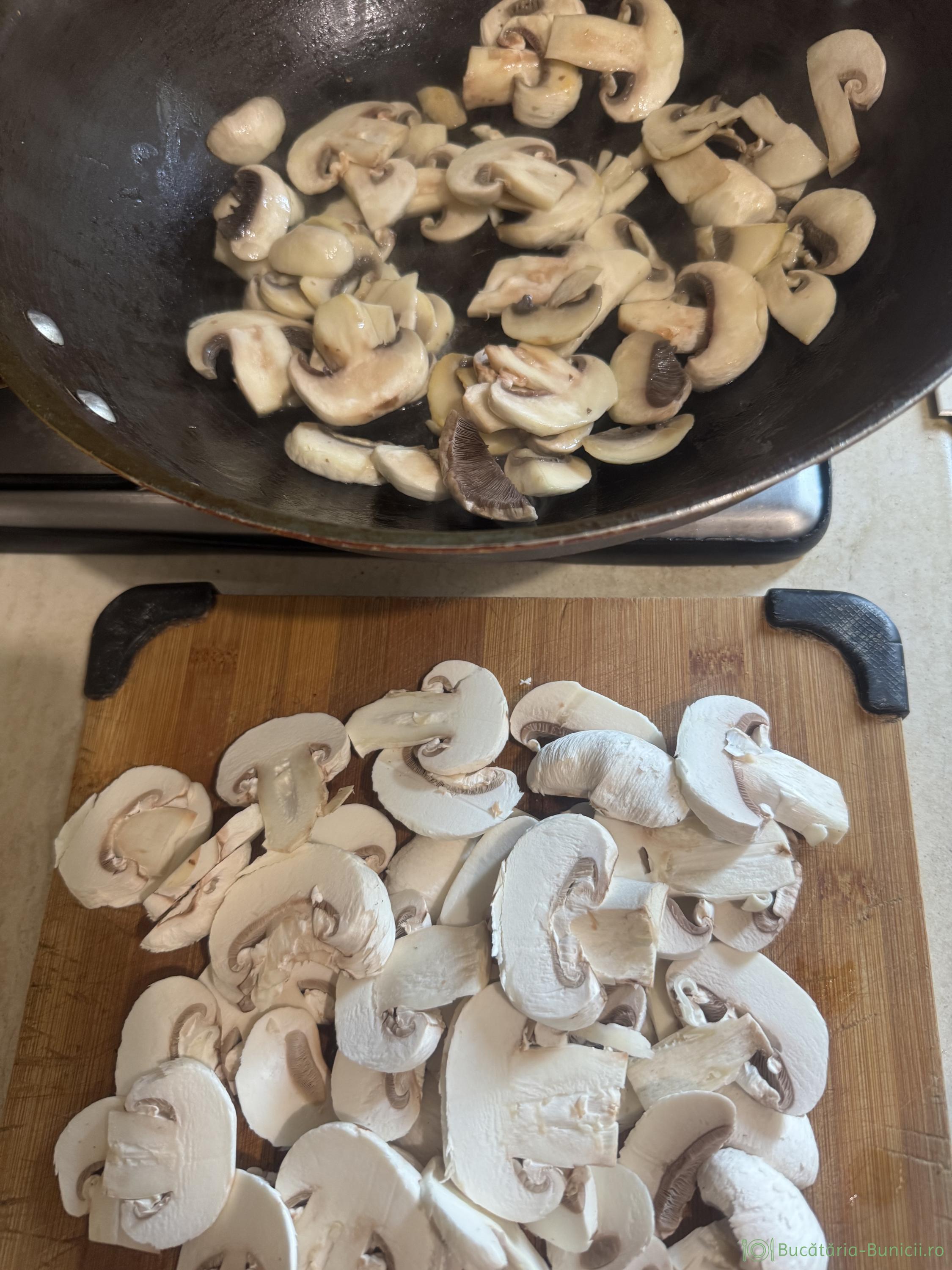 - Ciupercile curate se feliază, sau se taie în două, sau în sferturi și aici ține de dorința fiecăruia.