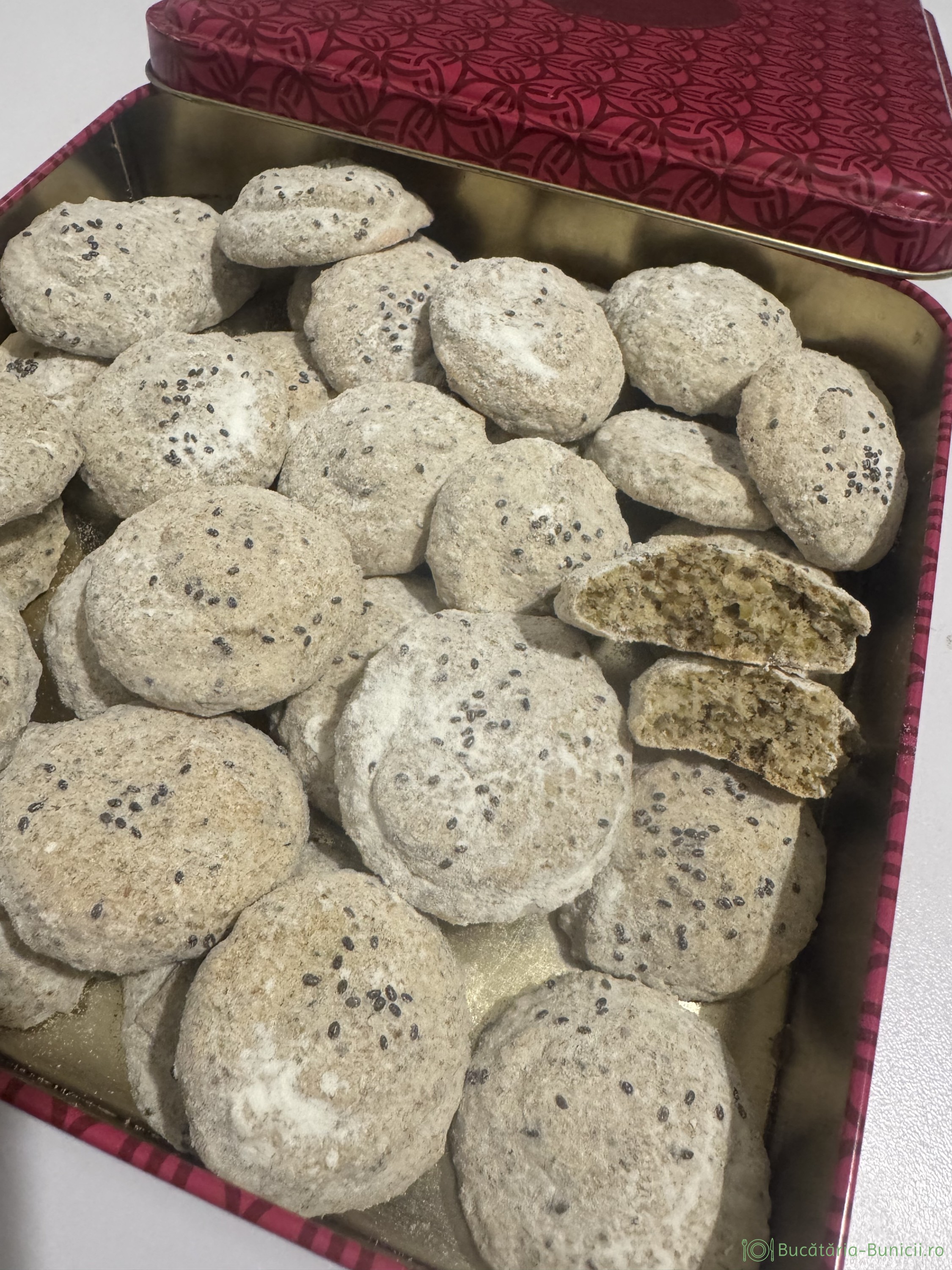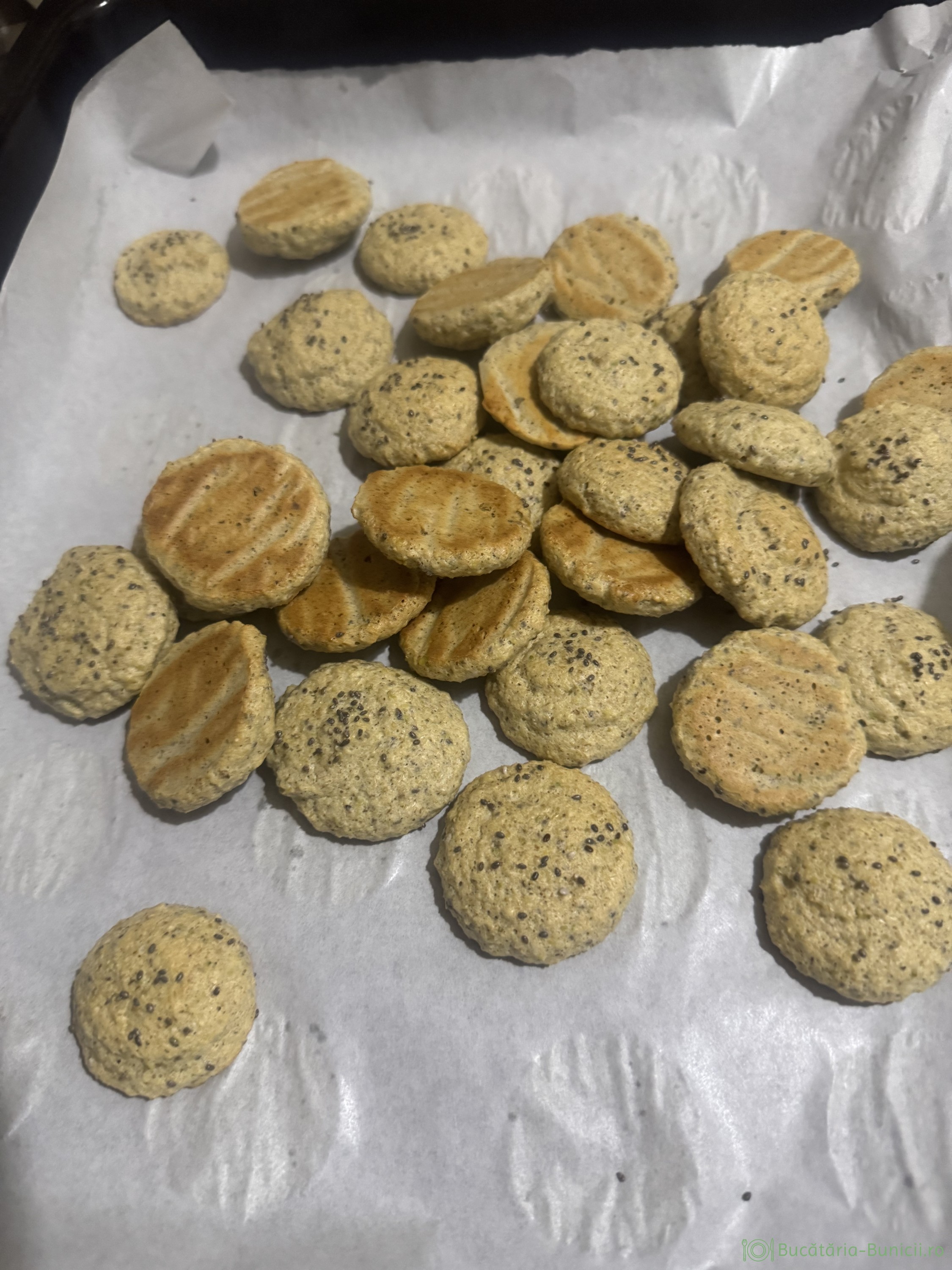 - Cu degetul umed se aplatizează vârful fursecului, apoi se presară deasupra semințe chia.