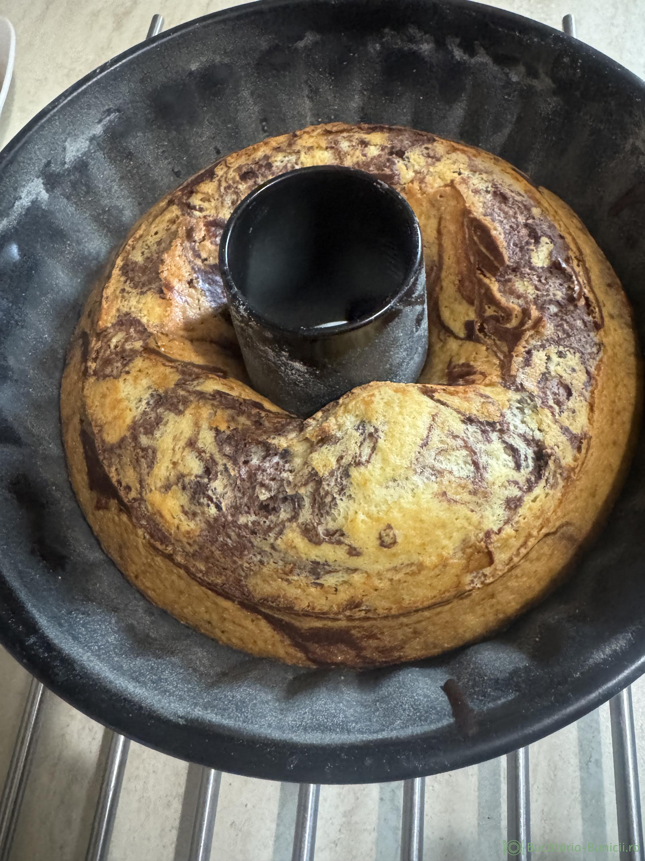 - Se dă forma în cuptorul preîncălzit la 175 grade, timp de 45 minute. Pentru siguranța se face testul scobitorii.