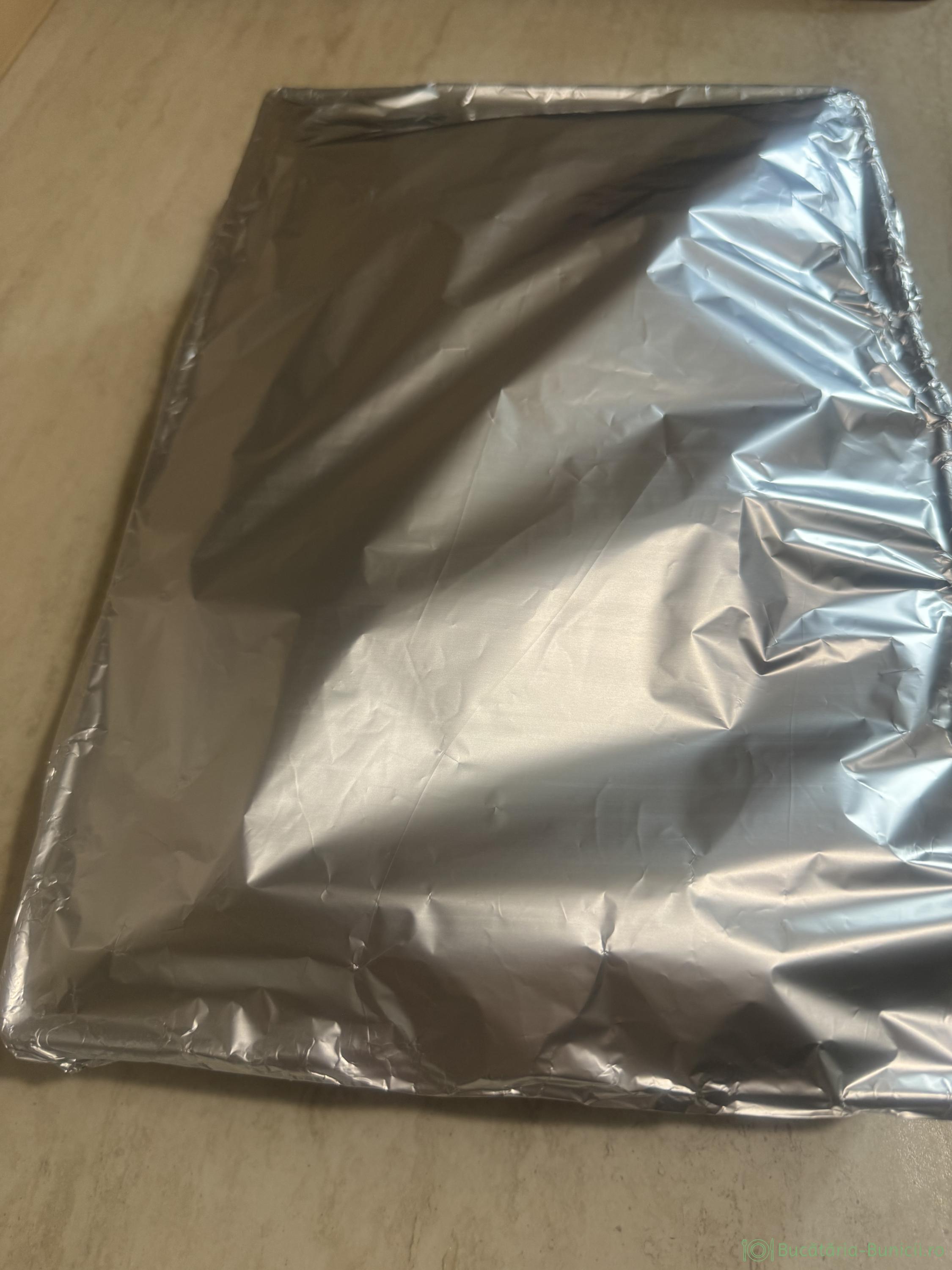 - Pregătim o tavă de 33/20 și dacă e cazul, așezăm hârtie de copt în ea.