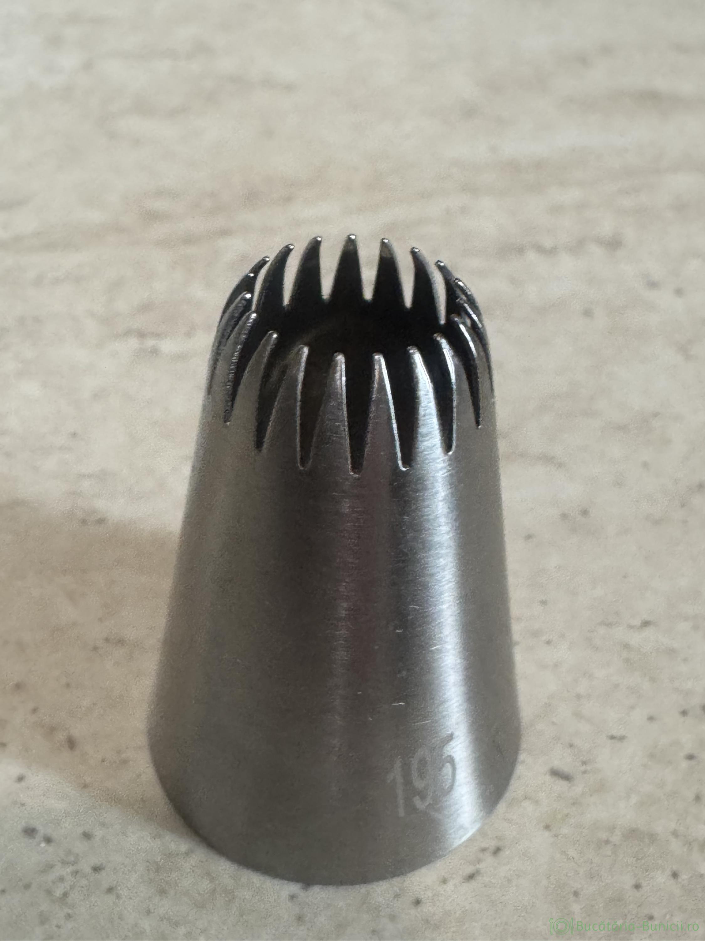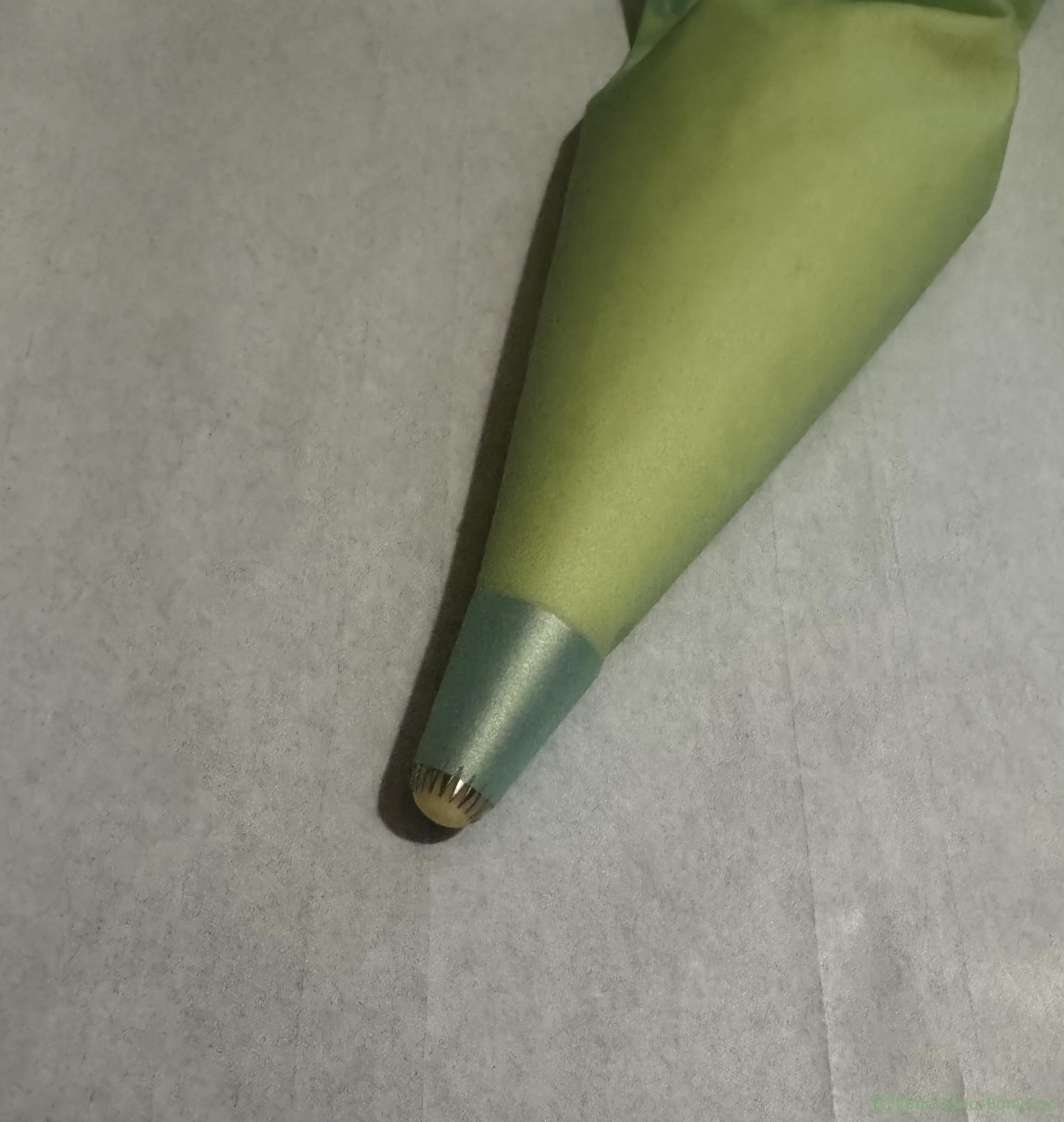 - Aluatul se pune în posh cu dui de 1 cm, forma la alegere. Duiul folosit de mine are inscripționat numărul 195, care l-am folosit atât la coji, dar și la umplut.