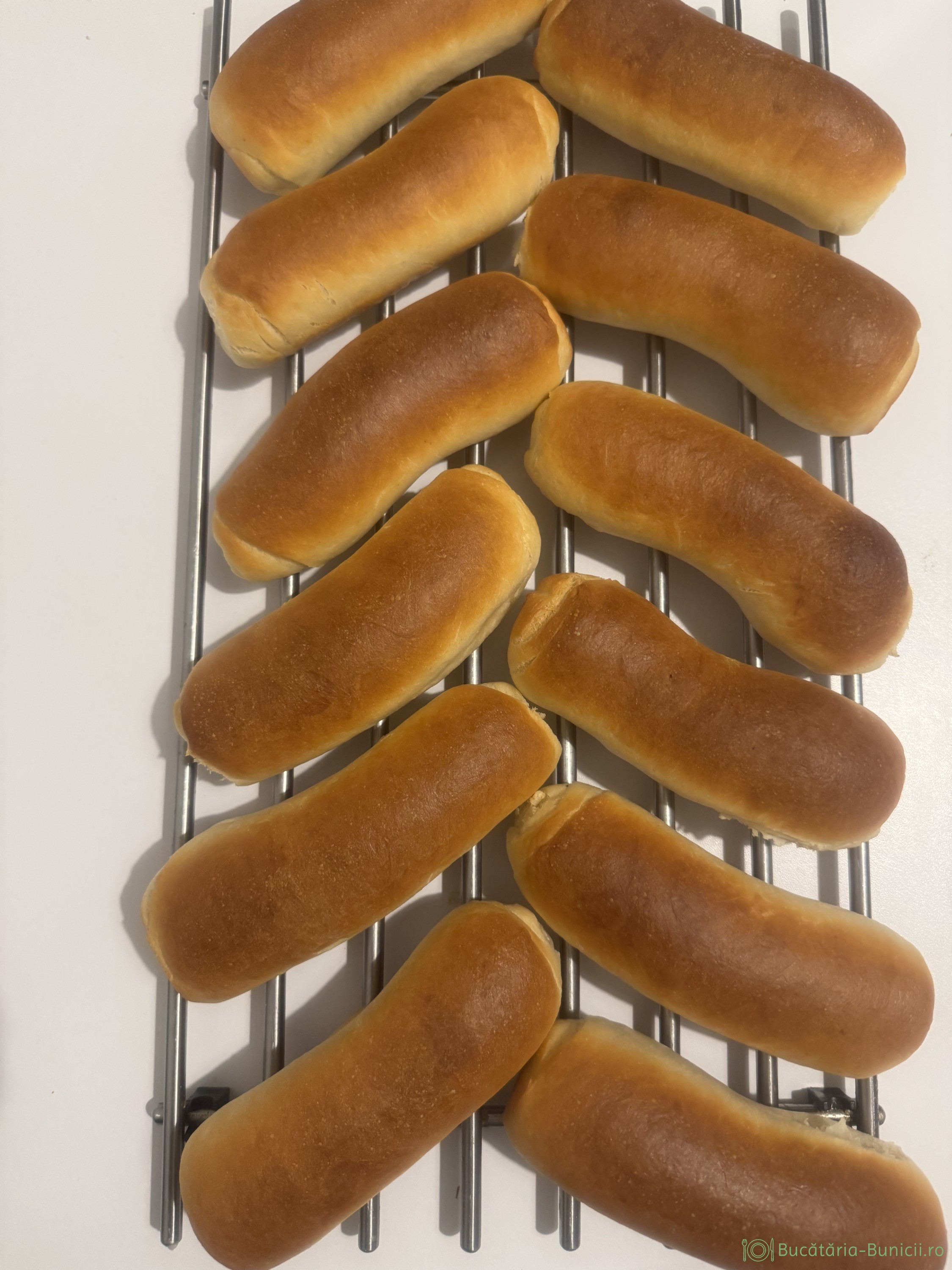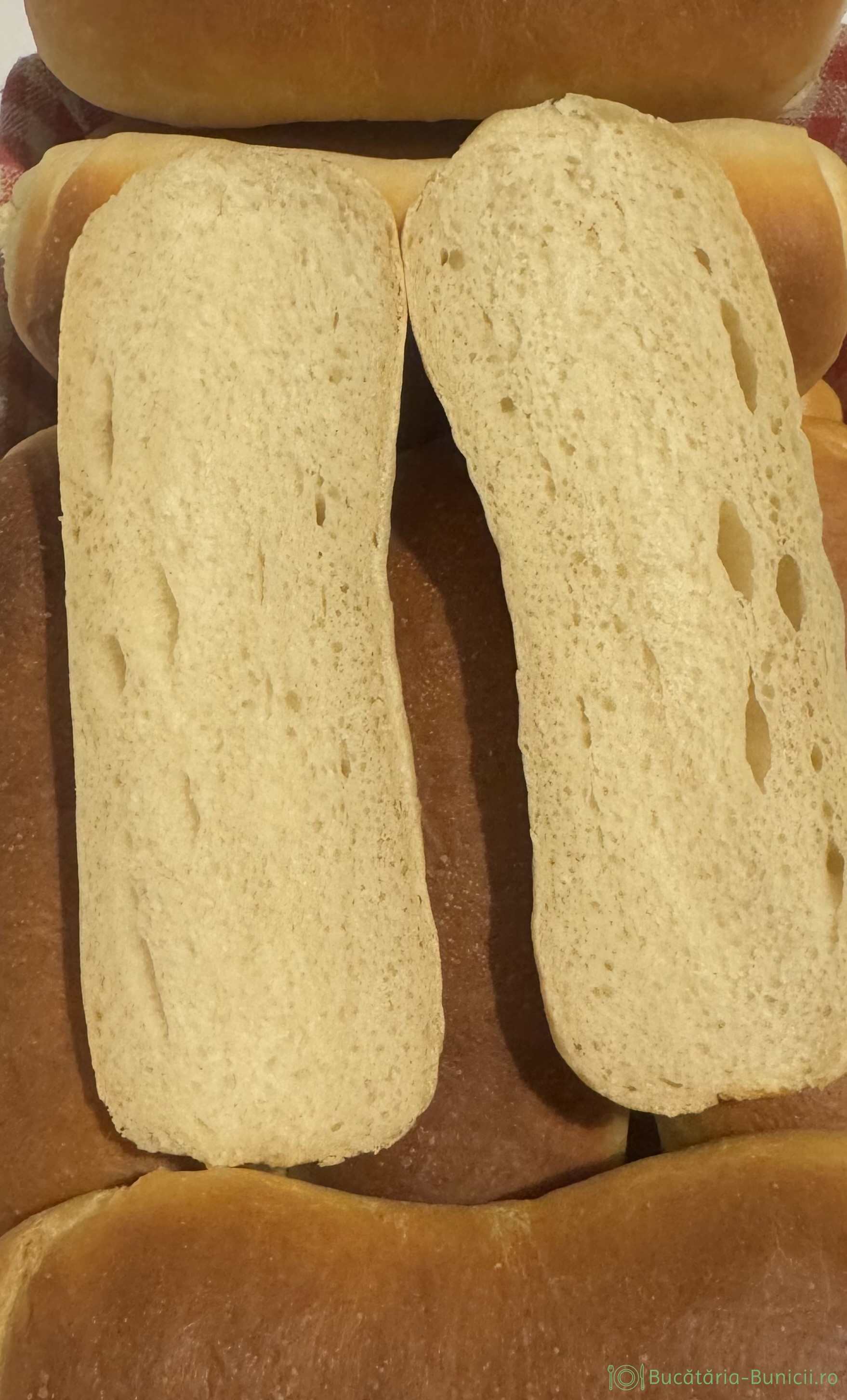 - Se lasă la răcit pe un grătar. Pentru sandwich pâinică se taie pe lung.