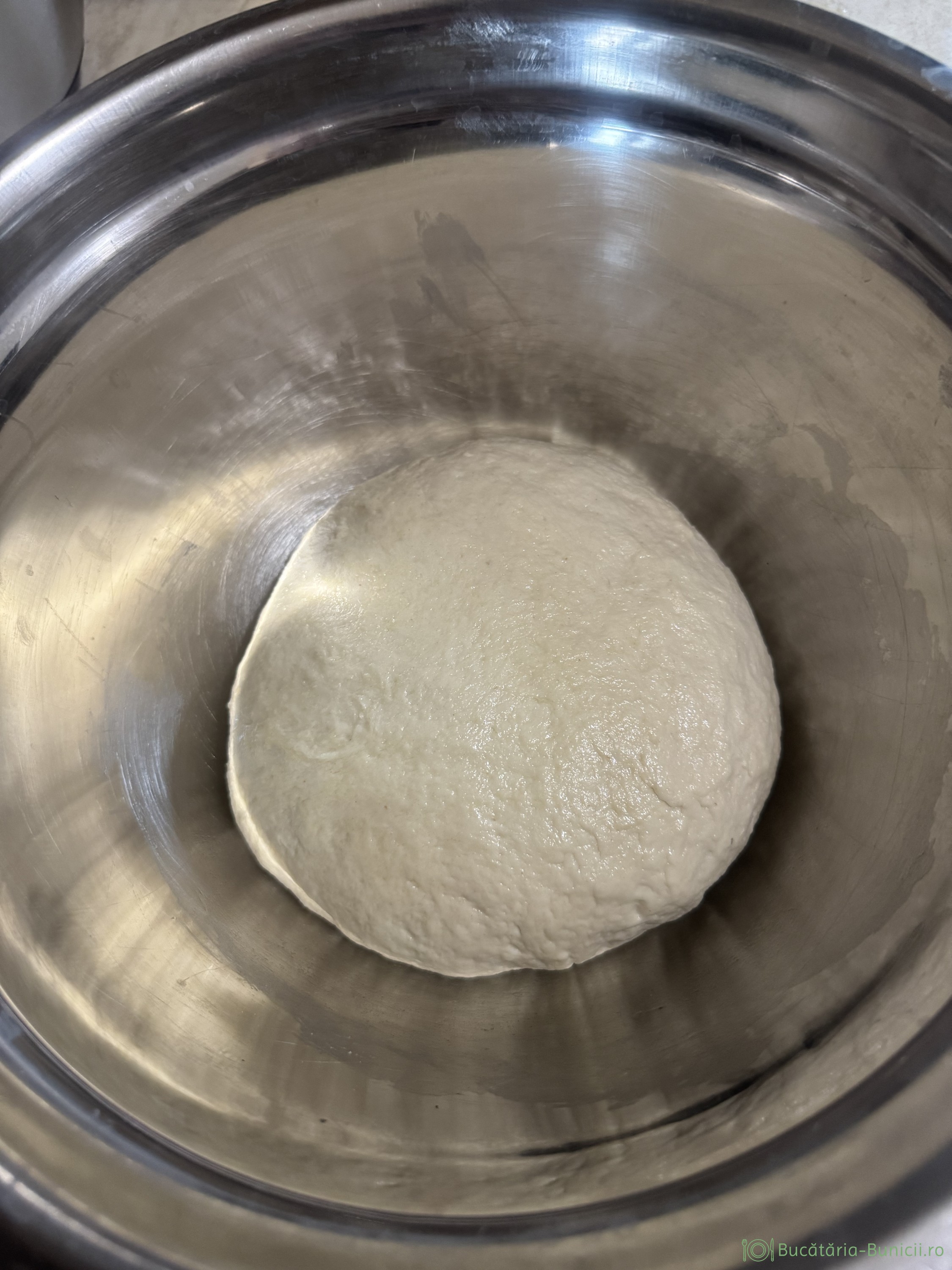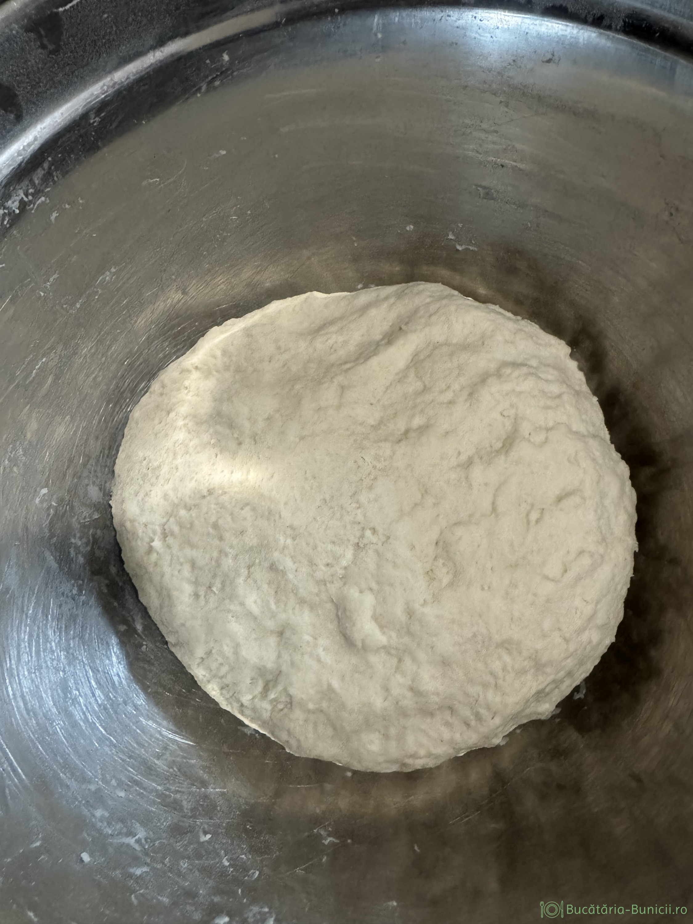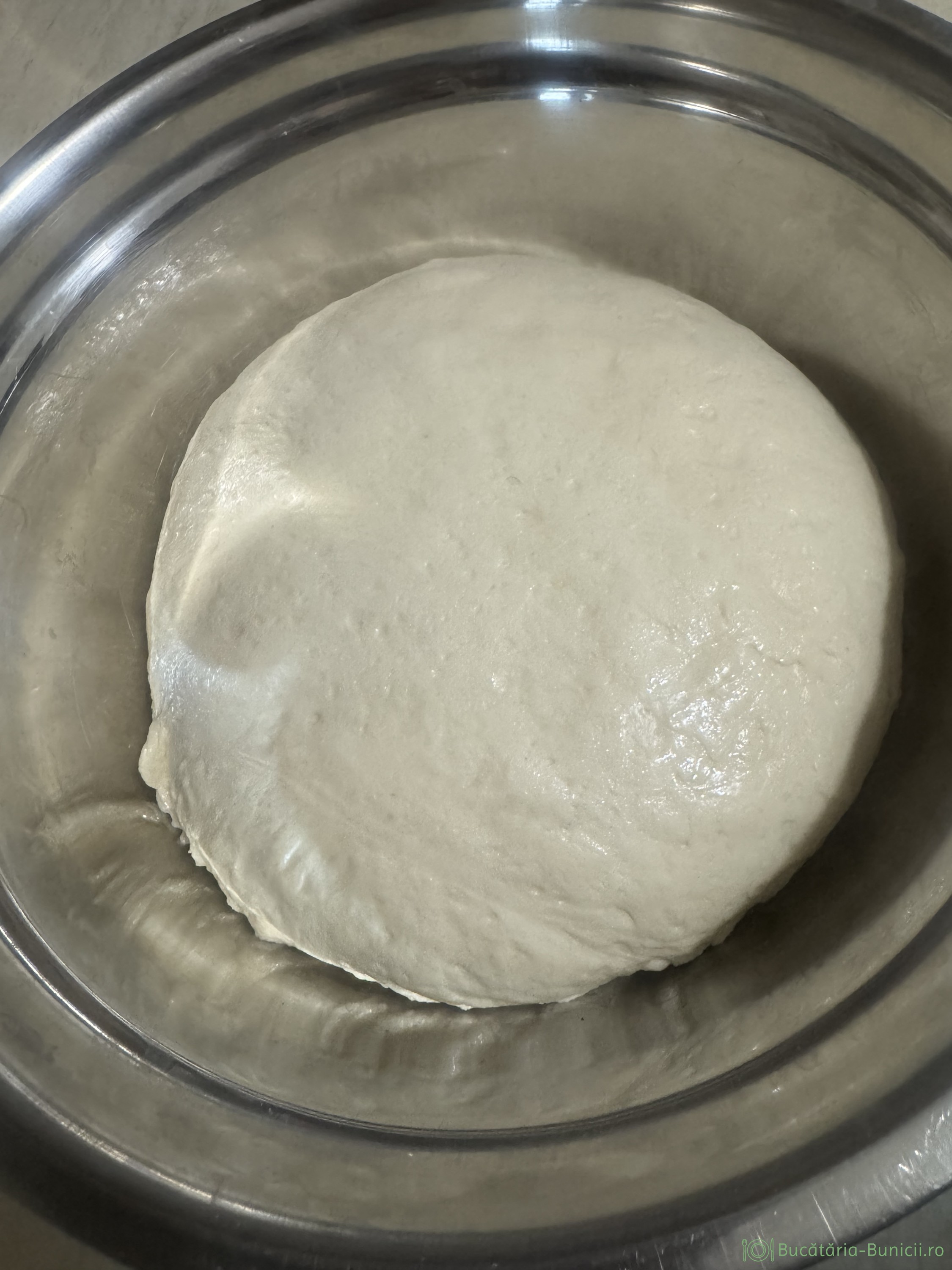 - Se așază aluatul în vas, se unge cu puțin ulei, se acoperă și se se lasă la dospit o oră.