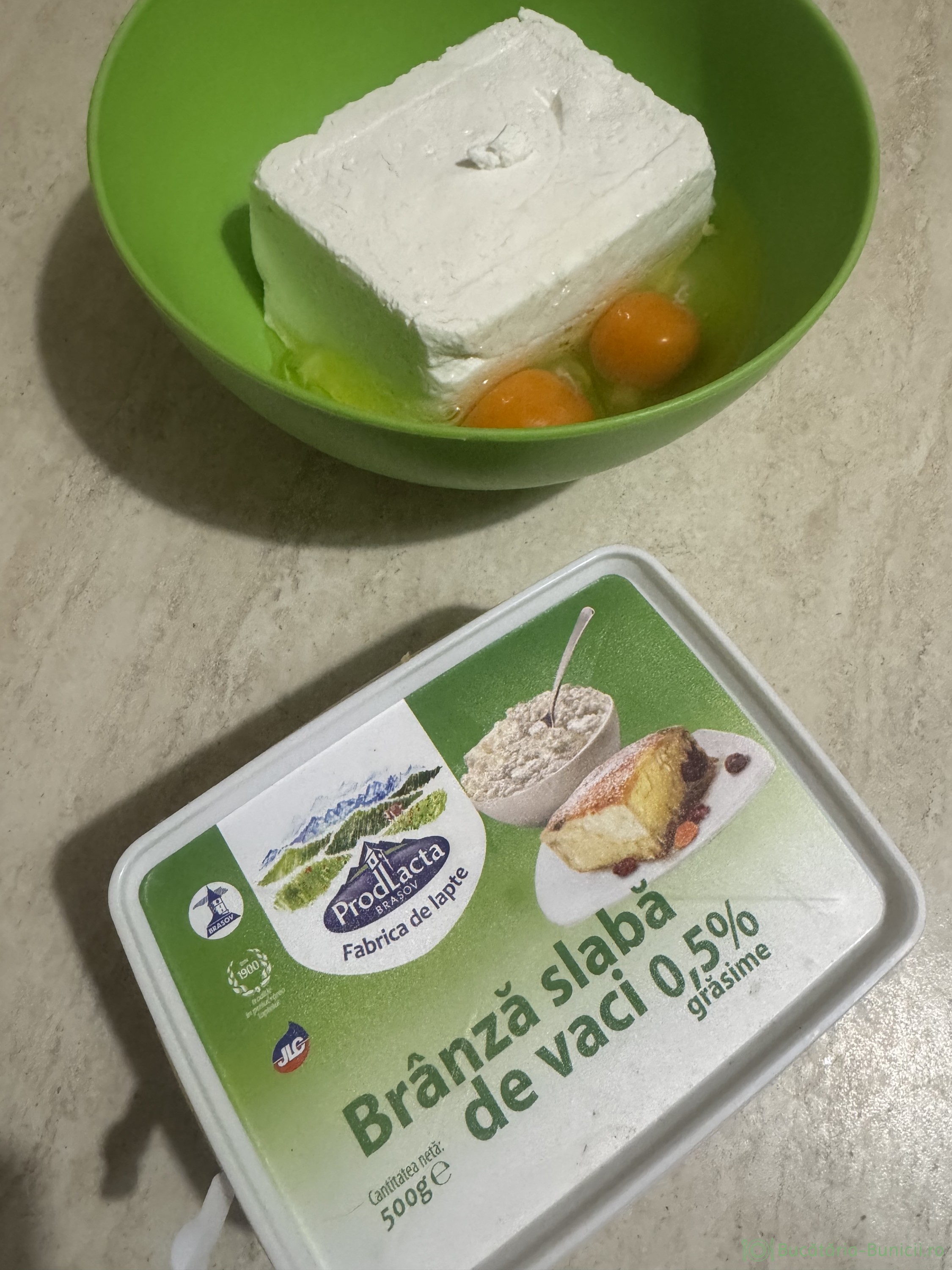 - 500 g brânză grunjoasă cu 0,5% grăsime