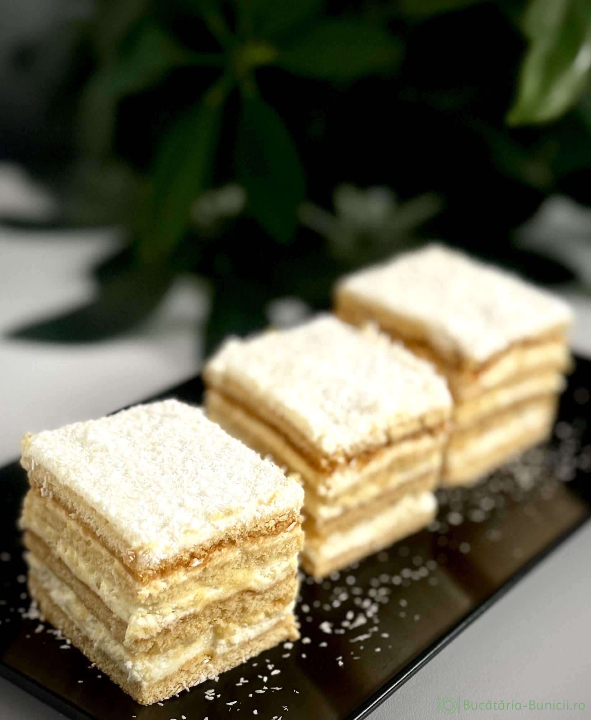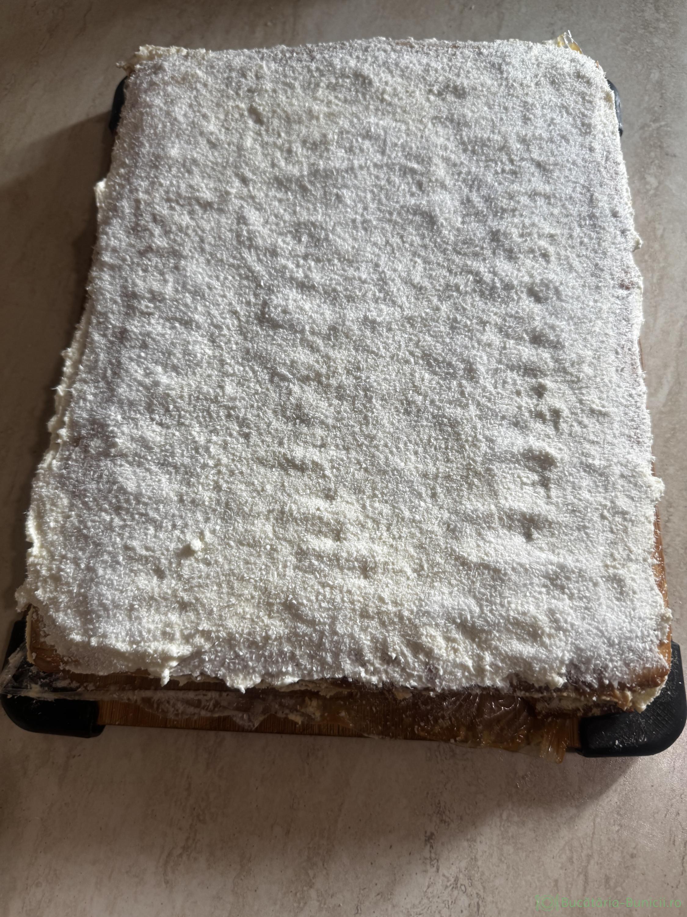 - Peste crema se presară din belșug fulgi de cocos.