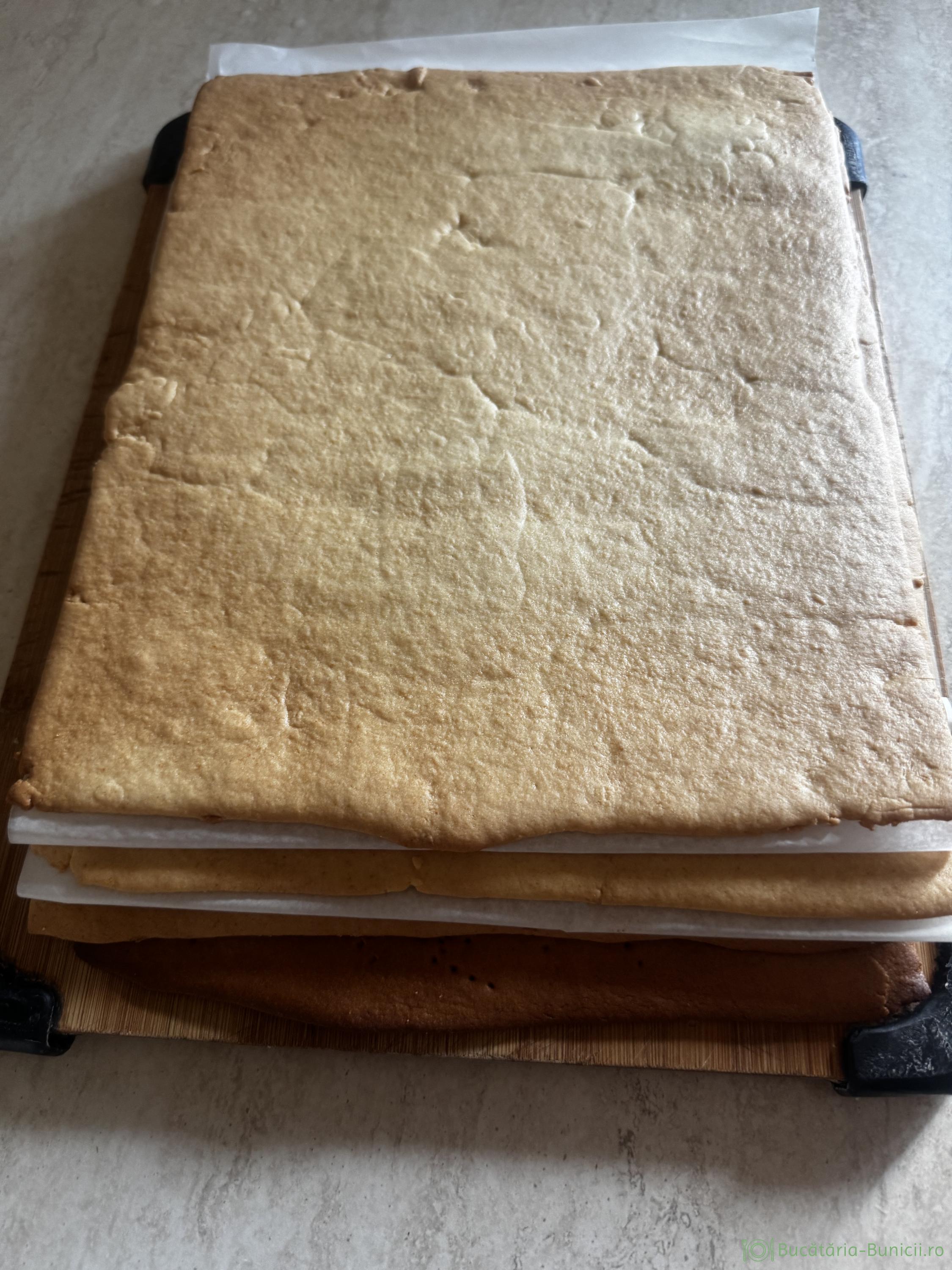 - Se lasă la răcit și continuam cu restul bucăților, obținând la final 4 foi subțiri.