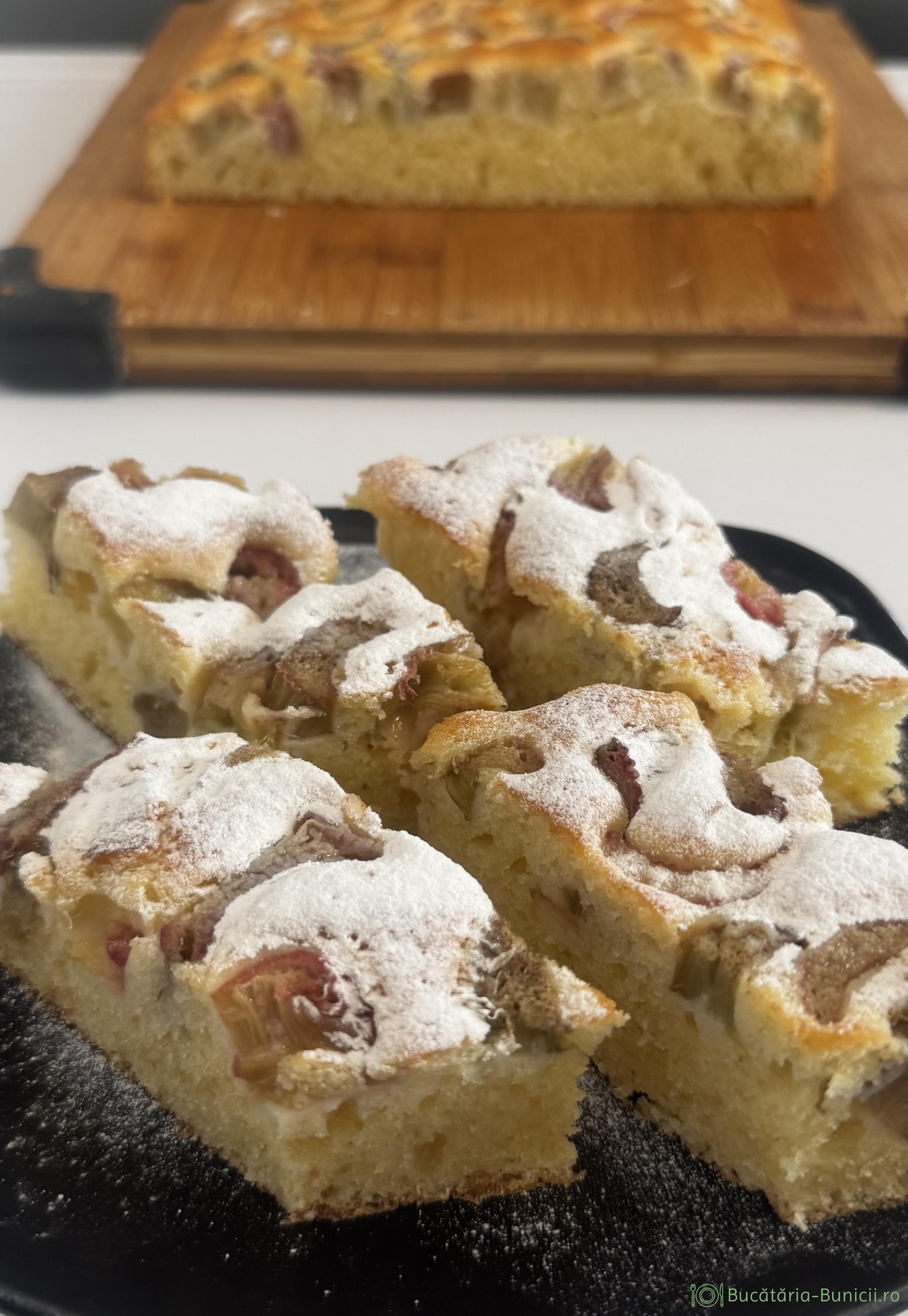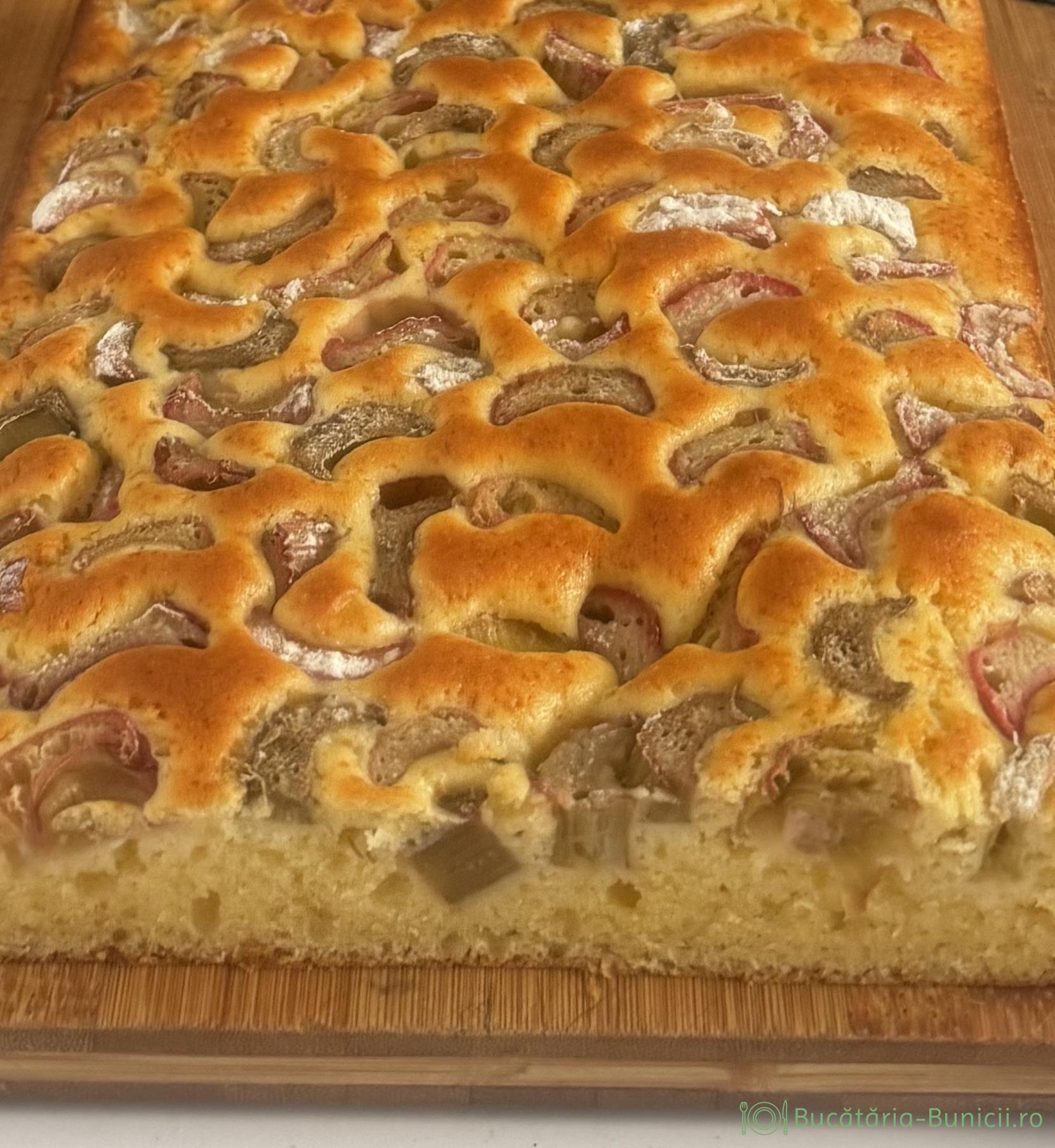 - Prăjitura este foarte delicioasă, cu miez pufos și aromat, foarte puțin umed, coaja este aromată de la unt, iar contrastul dintre dulcele miezului și gustul acrișor al rubarbei, este unul foarte plăcut.