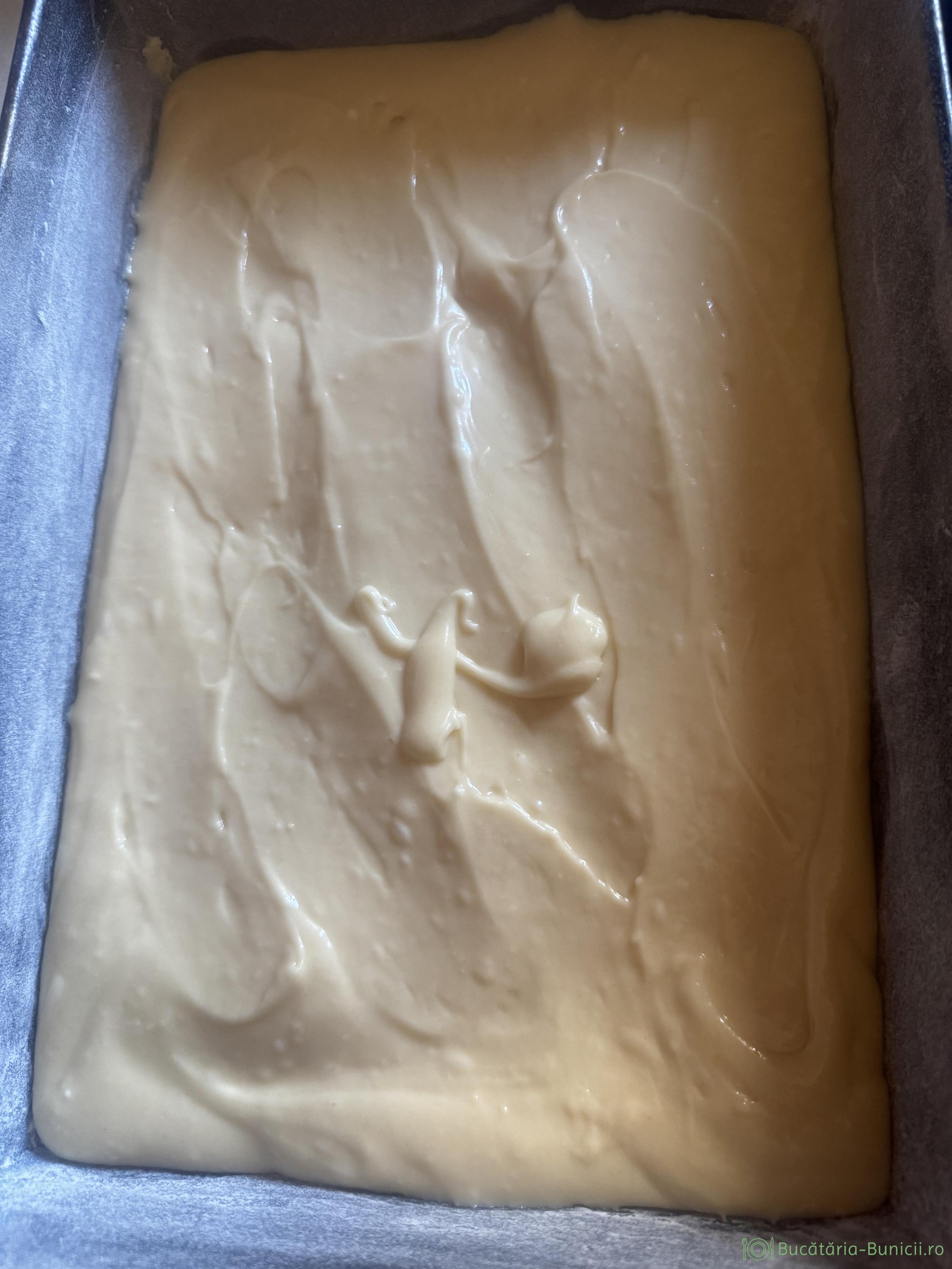 - Se dă tava în cuptorul încălzit și prăjitura se coace timp de 35-40 minute, până se rumenește deasupra și trece testul scobitorii.