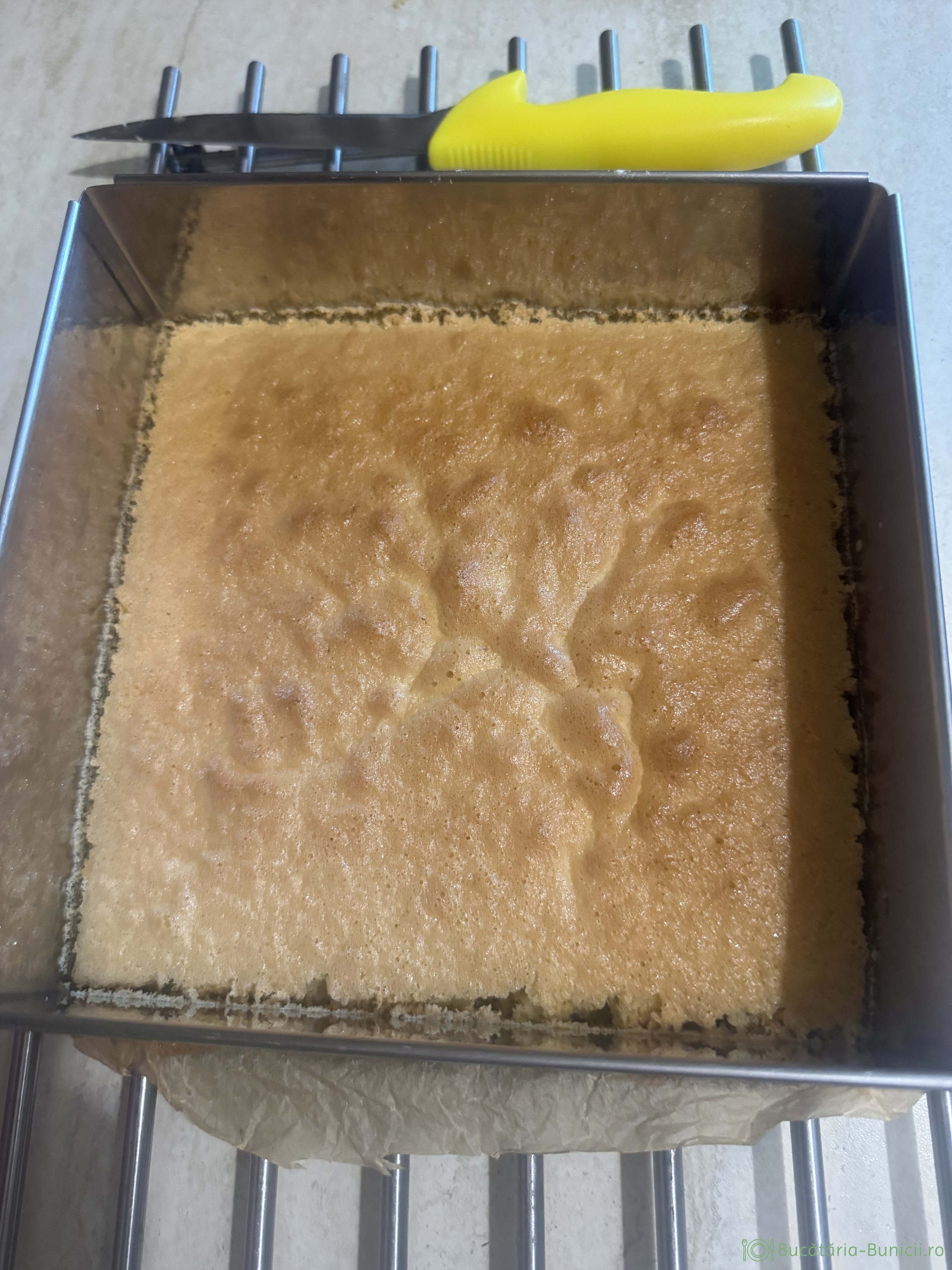 - A doua zi se îndepărtează cadrul metalic, trecând cu cuțitul pe toate laturile dintre prăjitură și cadru, apoi se feliază folosind un cuțit cu lamă lungă, spălată cu apă caldă, după fiecare tăietură.