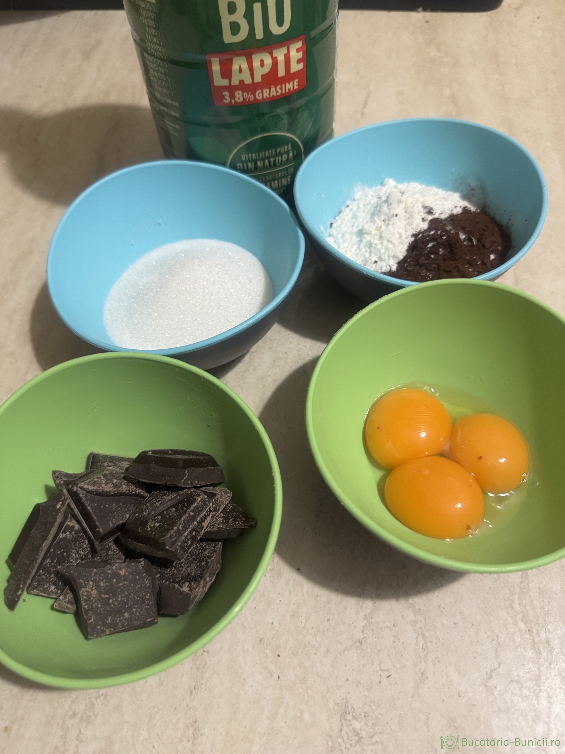 - 150 g ciocolată (100 g ciocolată cu lapte+ 50 g ciocolată amăruie)