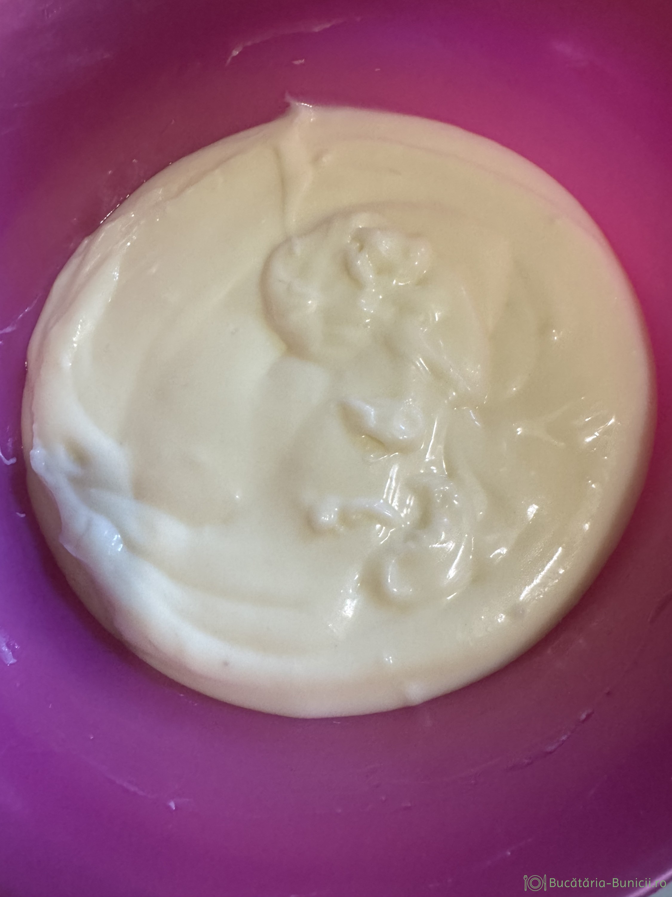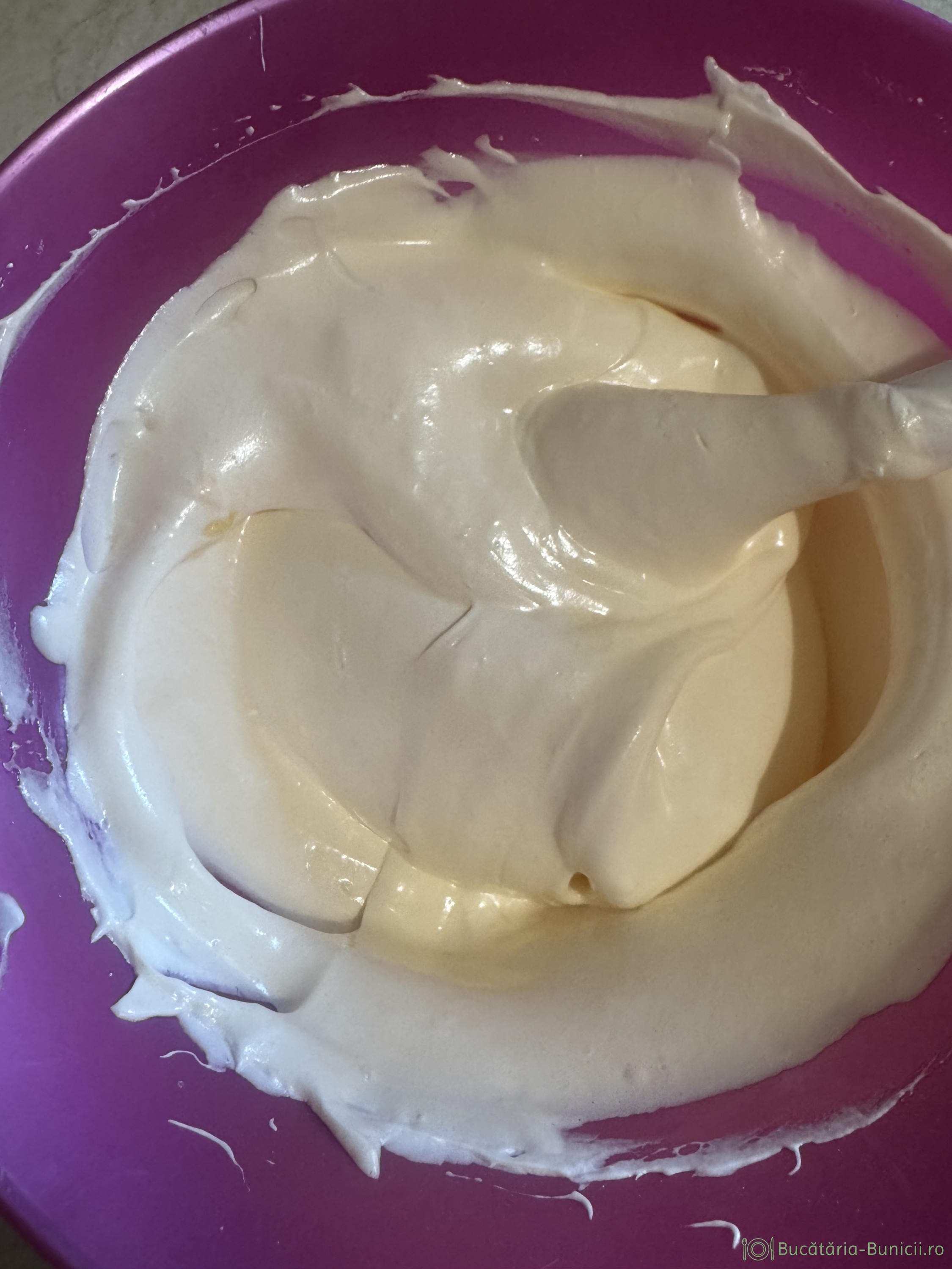 - Când crema este rece, se mixează la viteză mare 2-3 minute, până devine pufoasă și ferma.