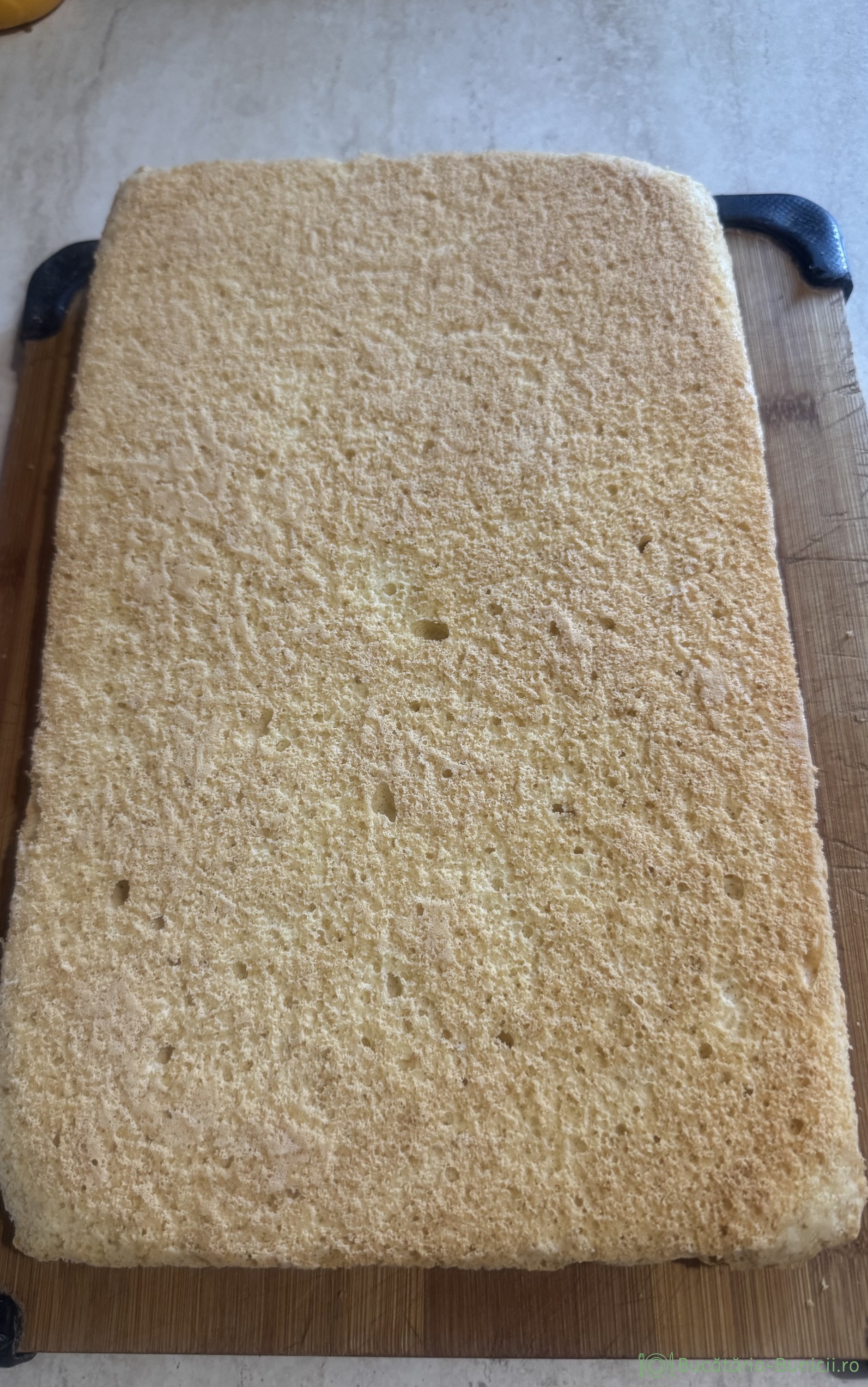 - Blatul se pune la răcit, nu înainte de a îndepărta hârtia de copt.