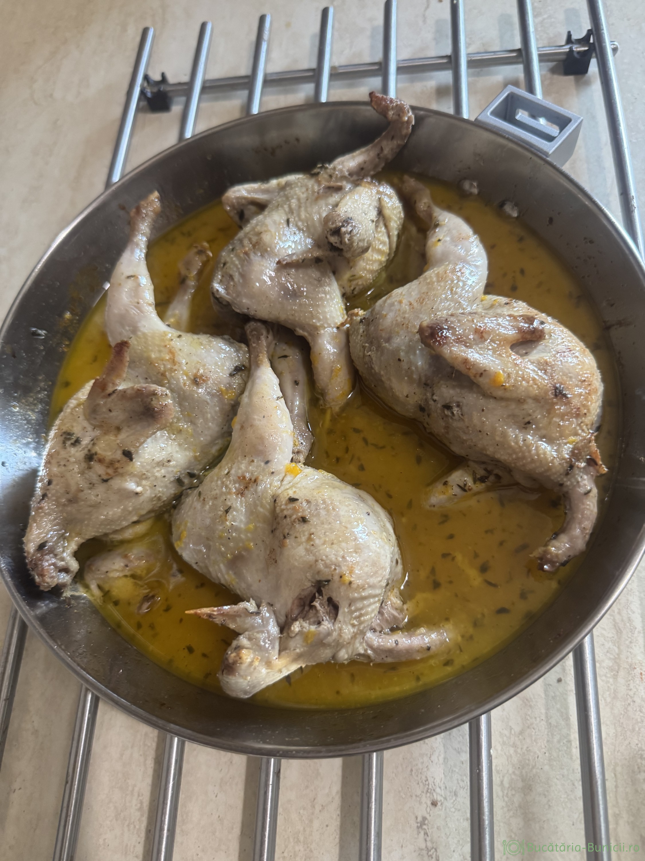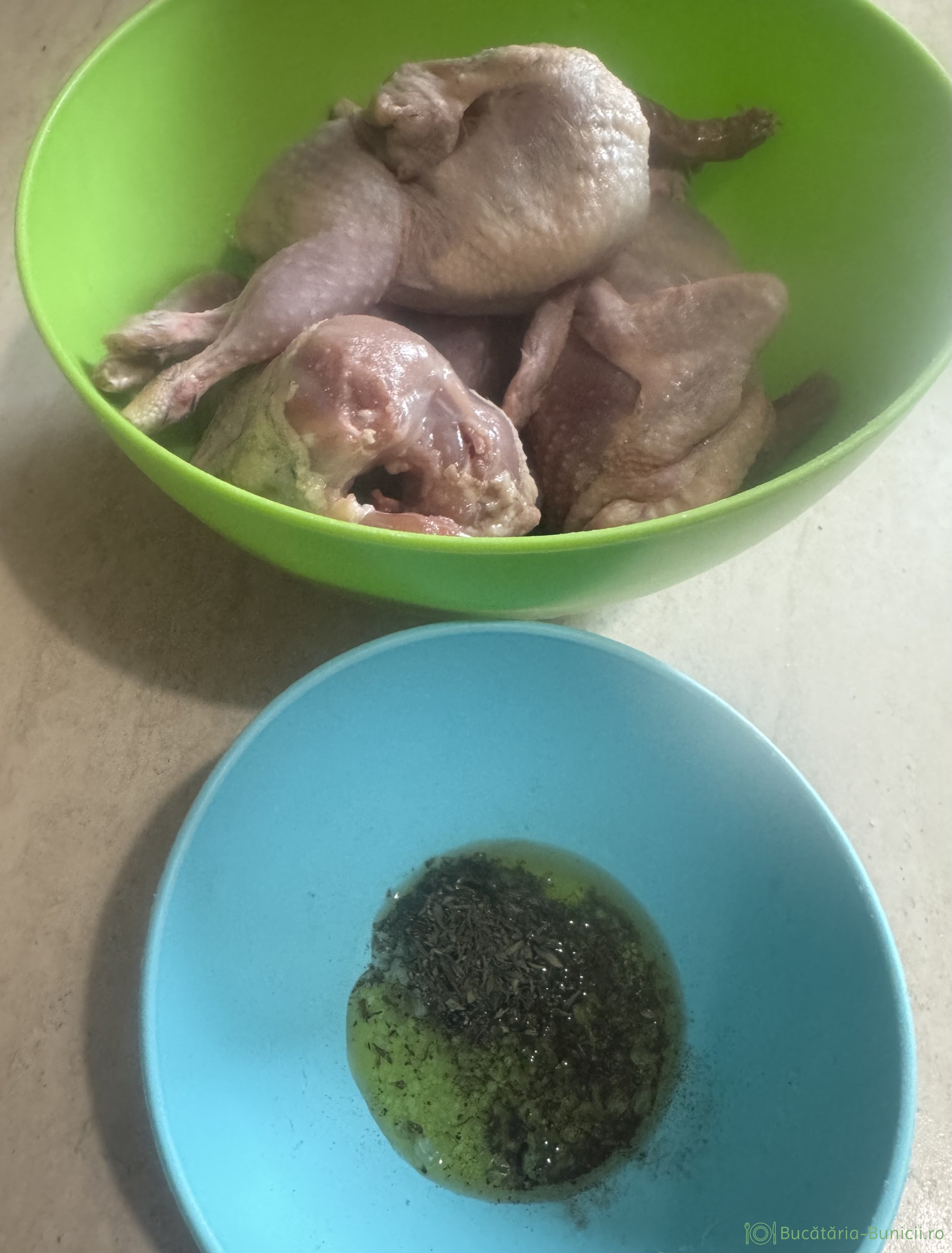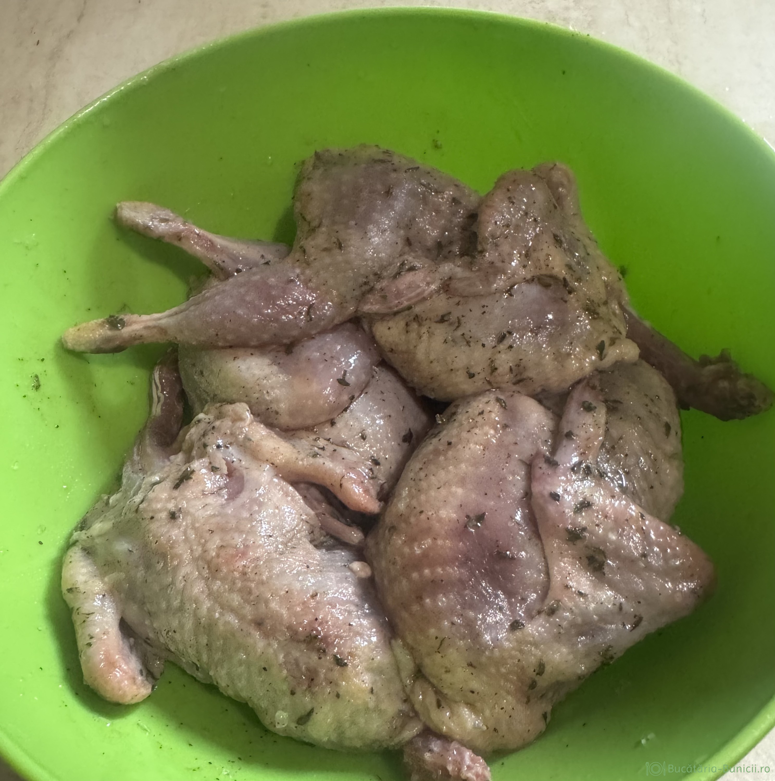 - Se masează păsările cu aceste condimente, se acoperă cu folie alimentară și se dau la frigider peste noapte.
