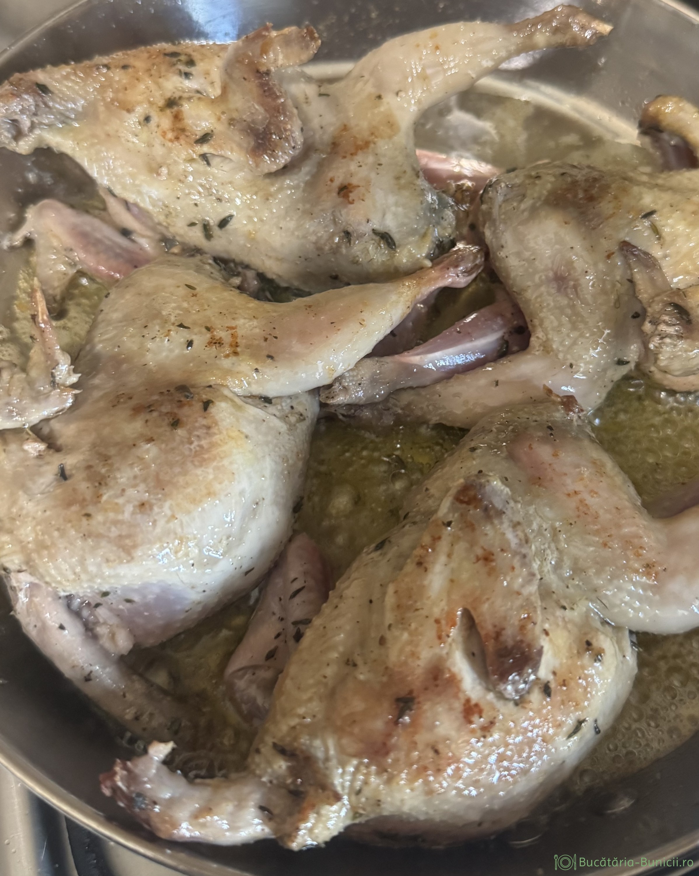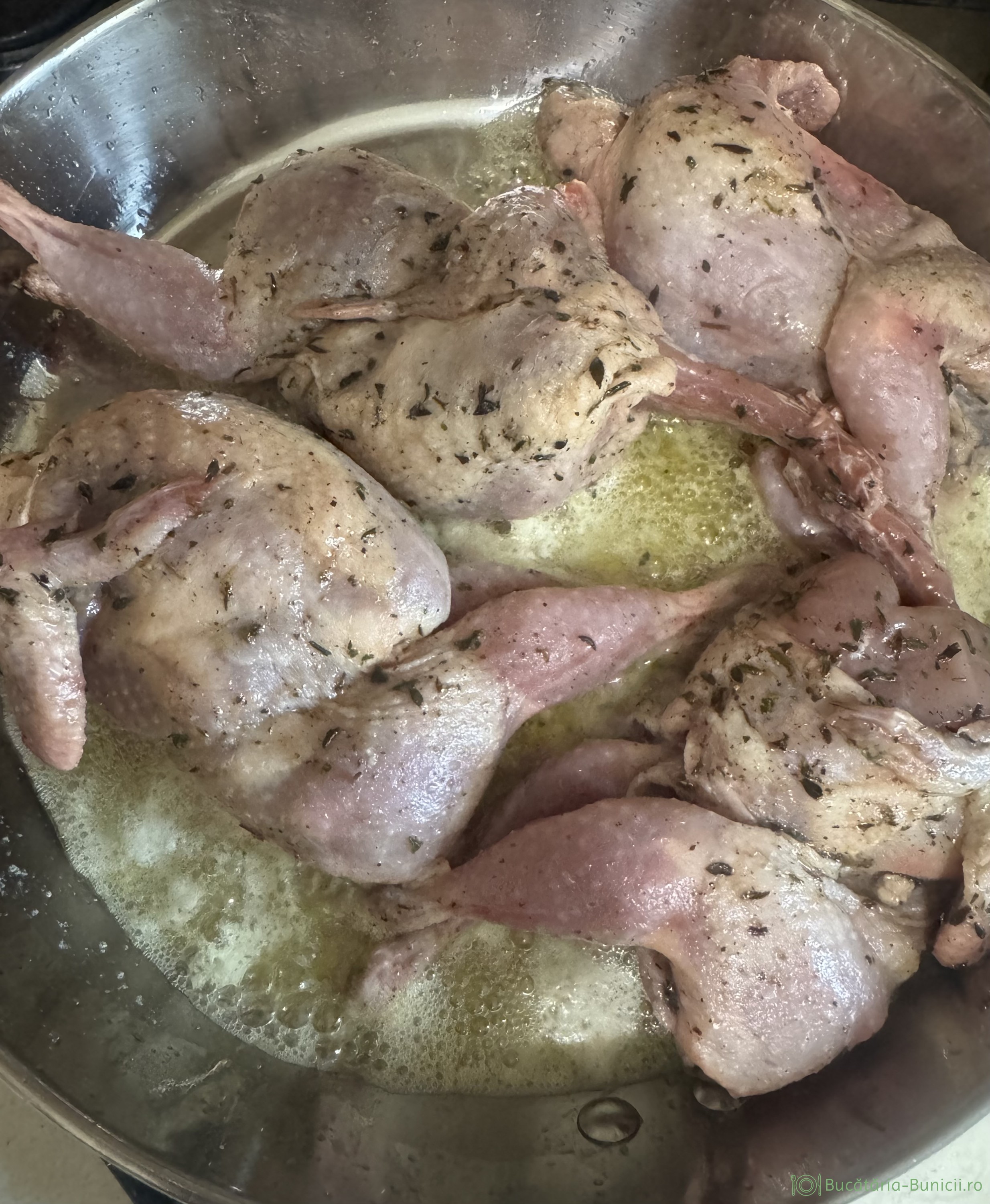 - Se pun păsările în untul încins și se prăjesc pe ambele părți.