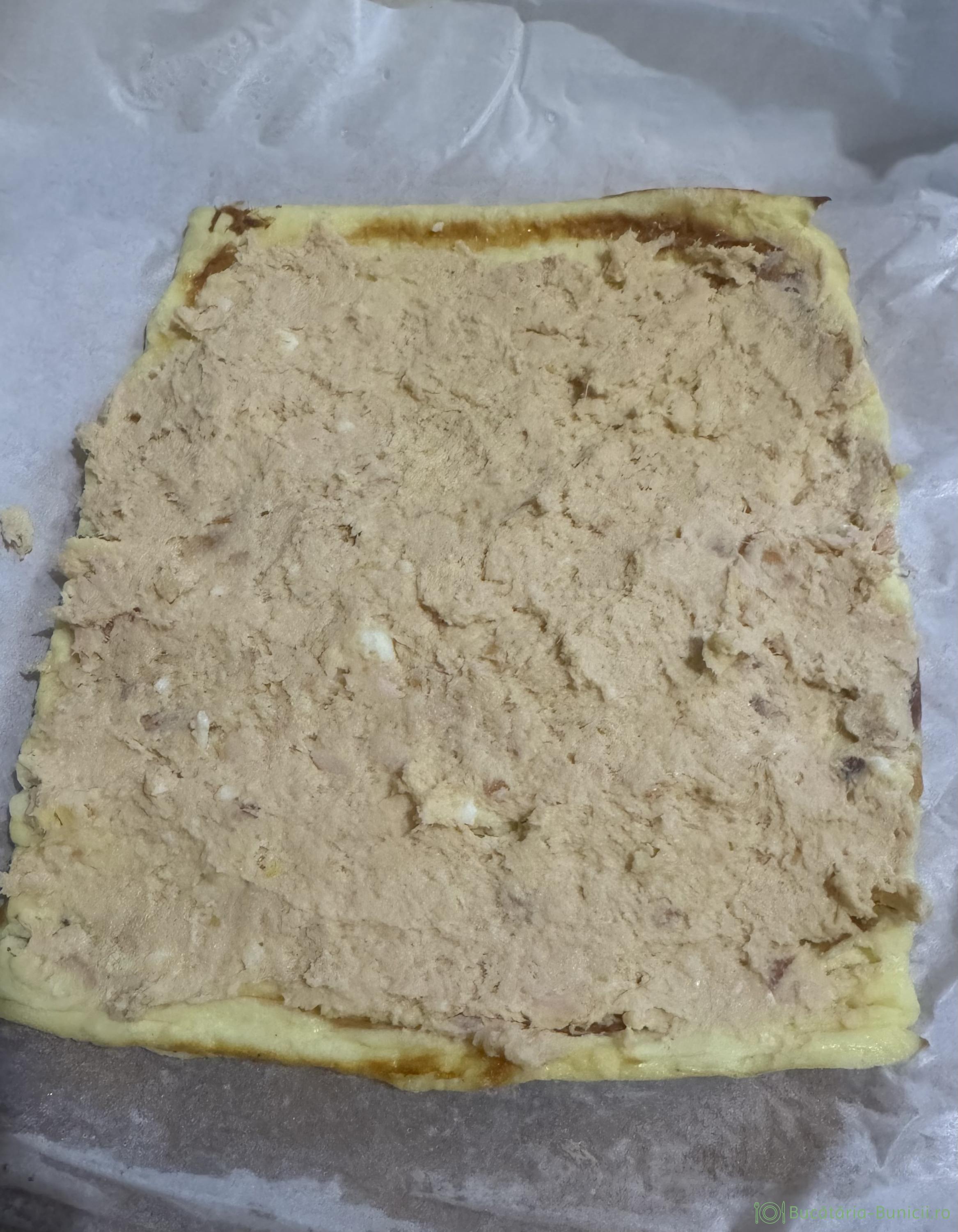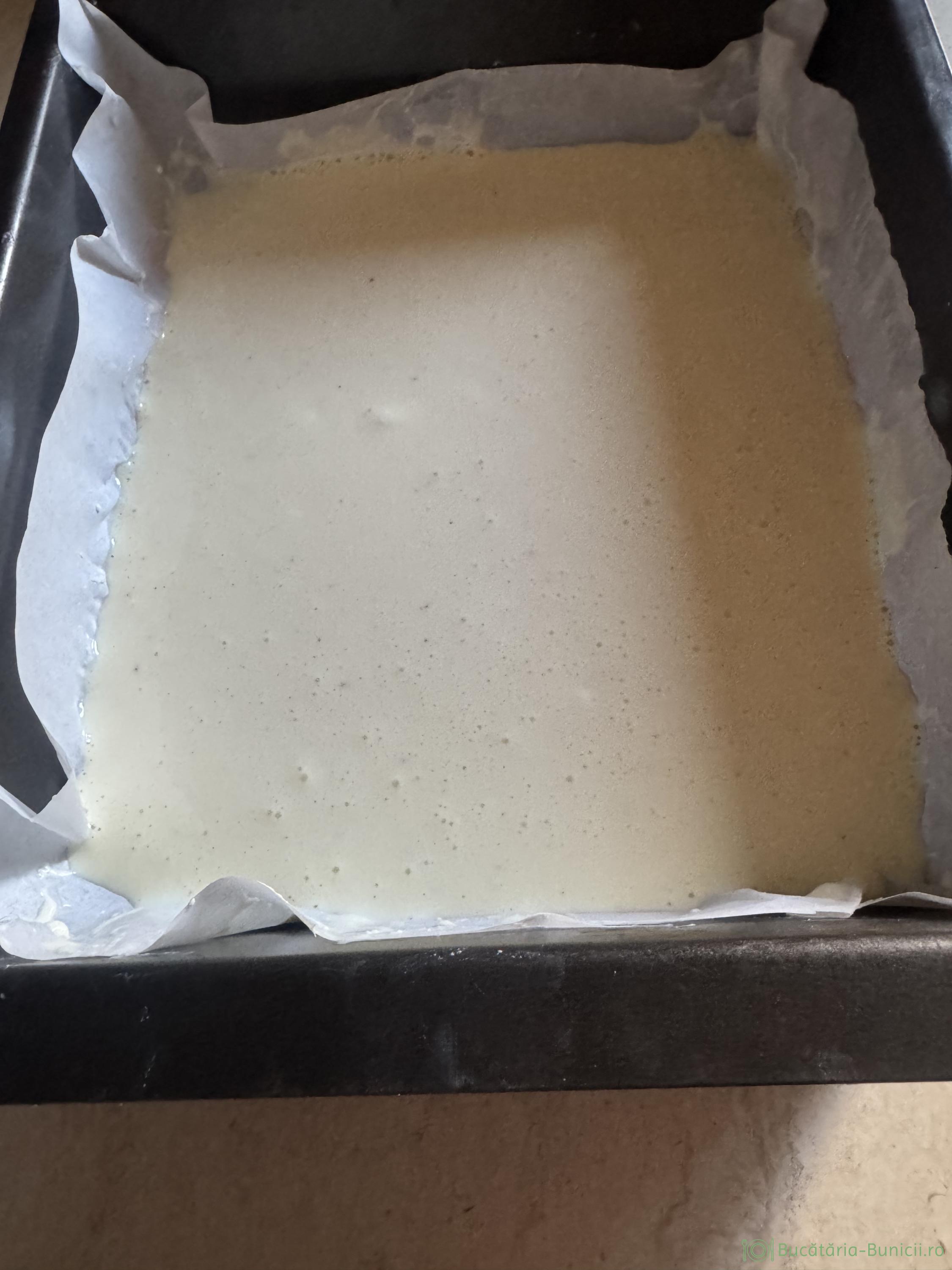 - Într-o tavă de 20/22 cm se pune hârtie de copt.