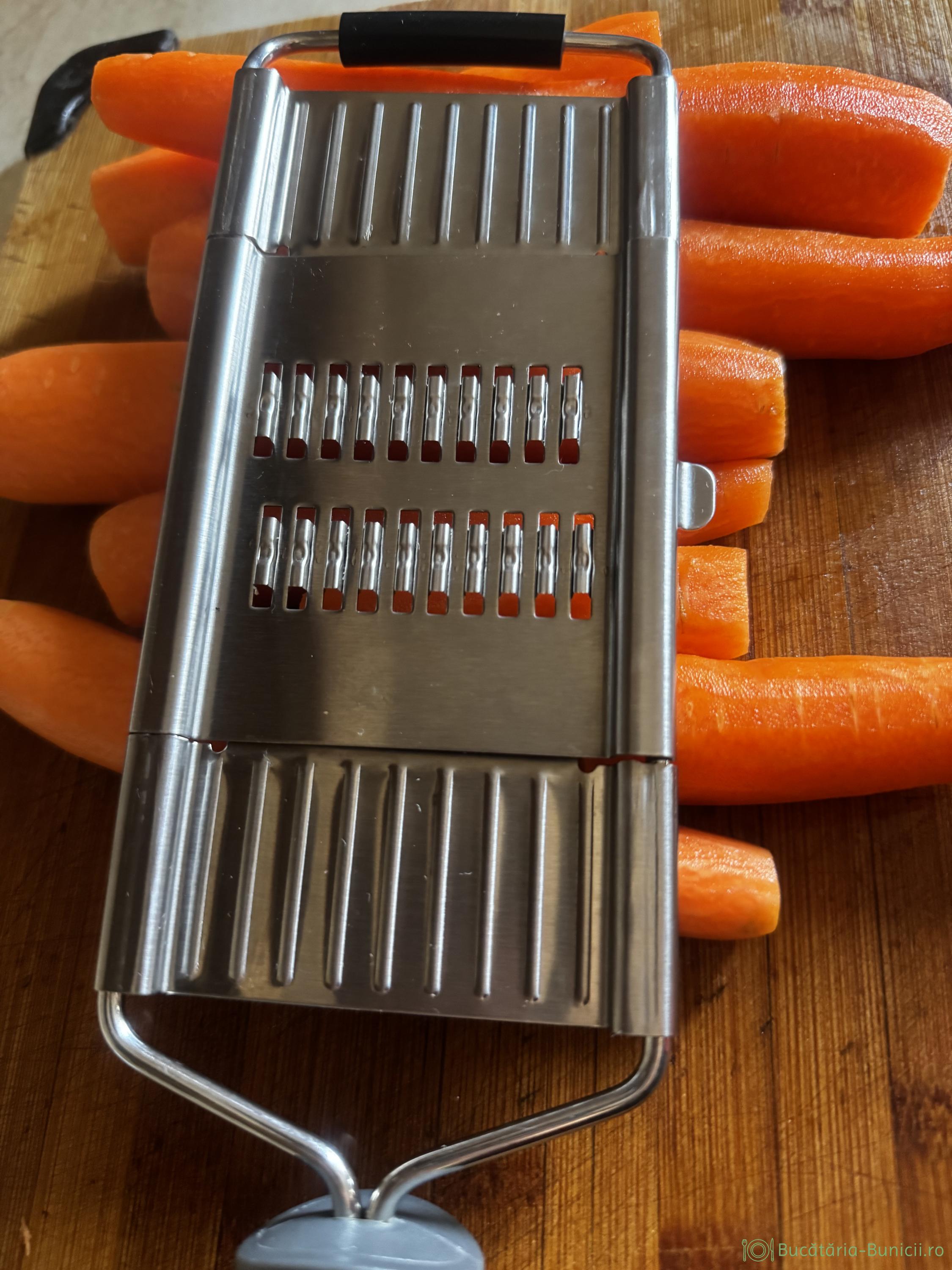 - În linkul de inspirație, autoarea specifică faptul ca, pentru morcovi avem nevoie de răzătoare specială, care taie morcovii sub forma unor bețe de chibrit, dar mai subțiri. Se menționează ca, gustul salatei este influențat, de modul cum sunt răzuiți morcovii. Așa ca, am căutat răzătoarea specială, însă nu am găsit decât online, iar prețul este unul destul de mic. În galeria foto se găsește o poză, cu răzătoarea respectivă.