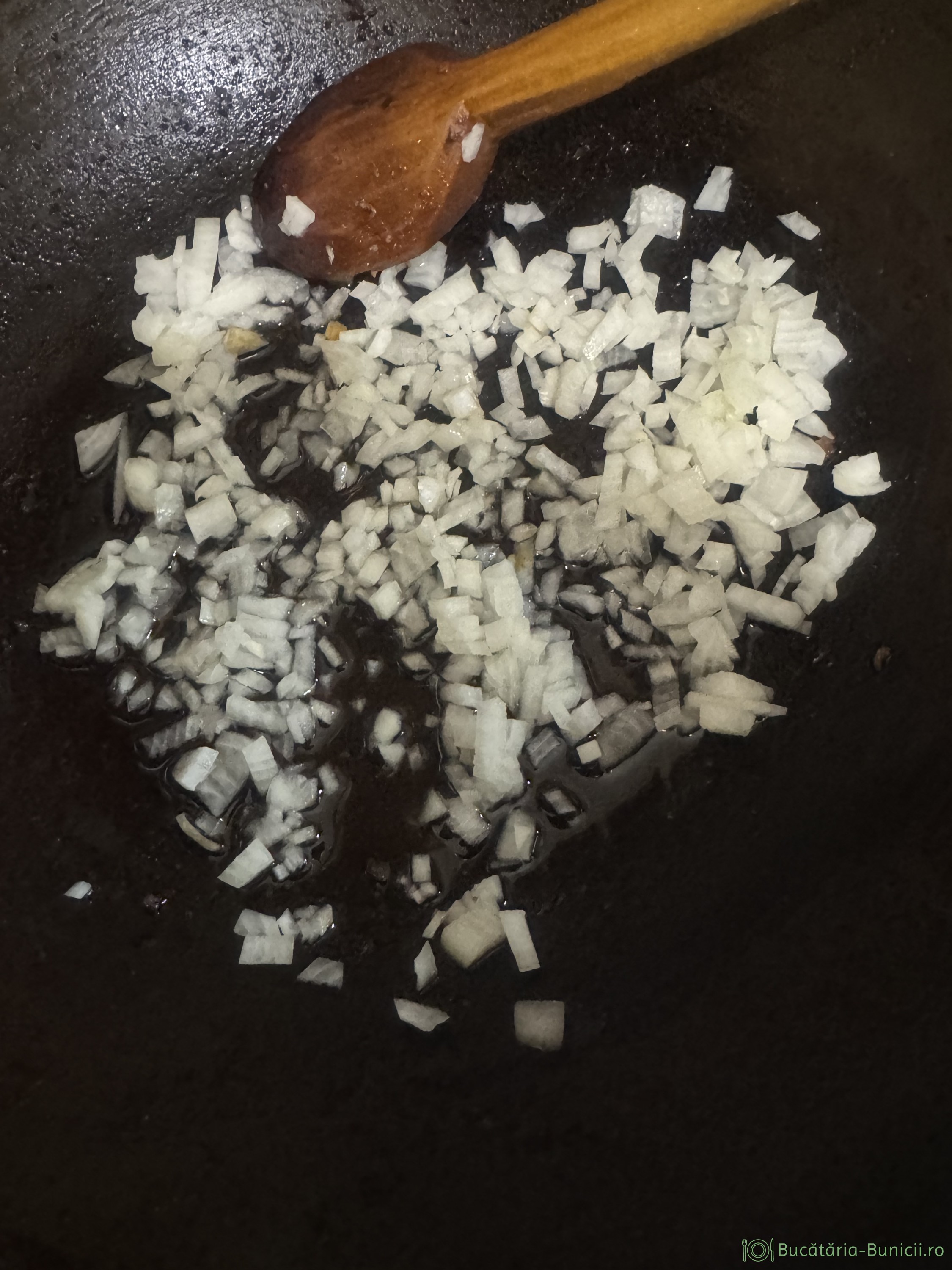 - Ceapa se toacă mărunt.