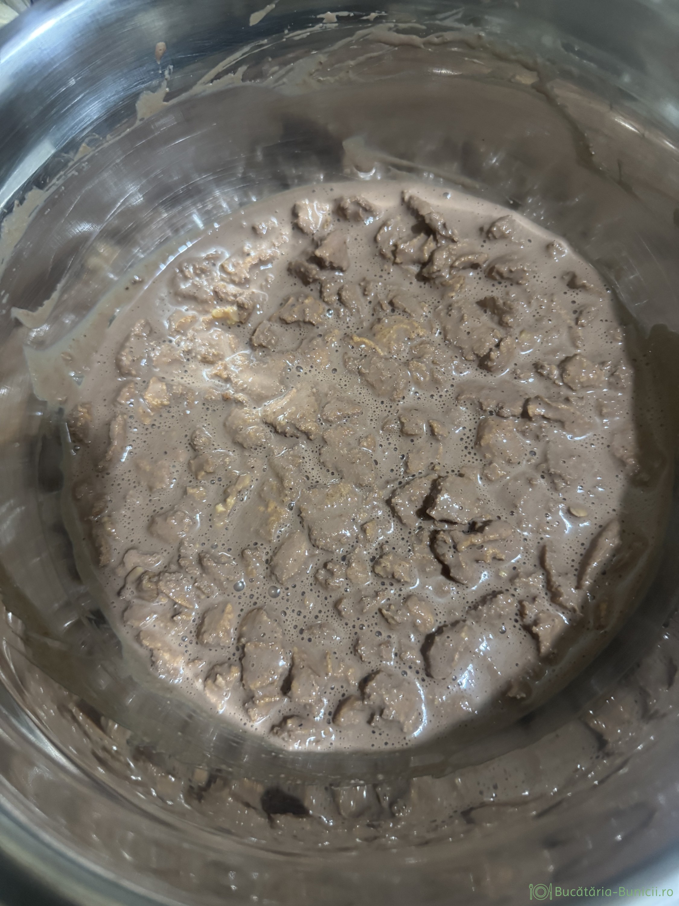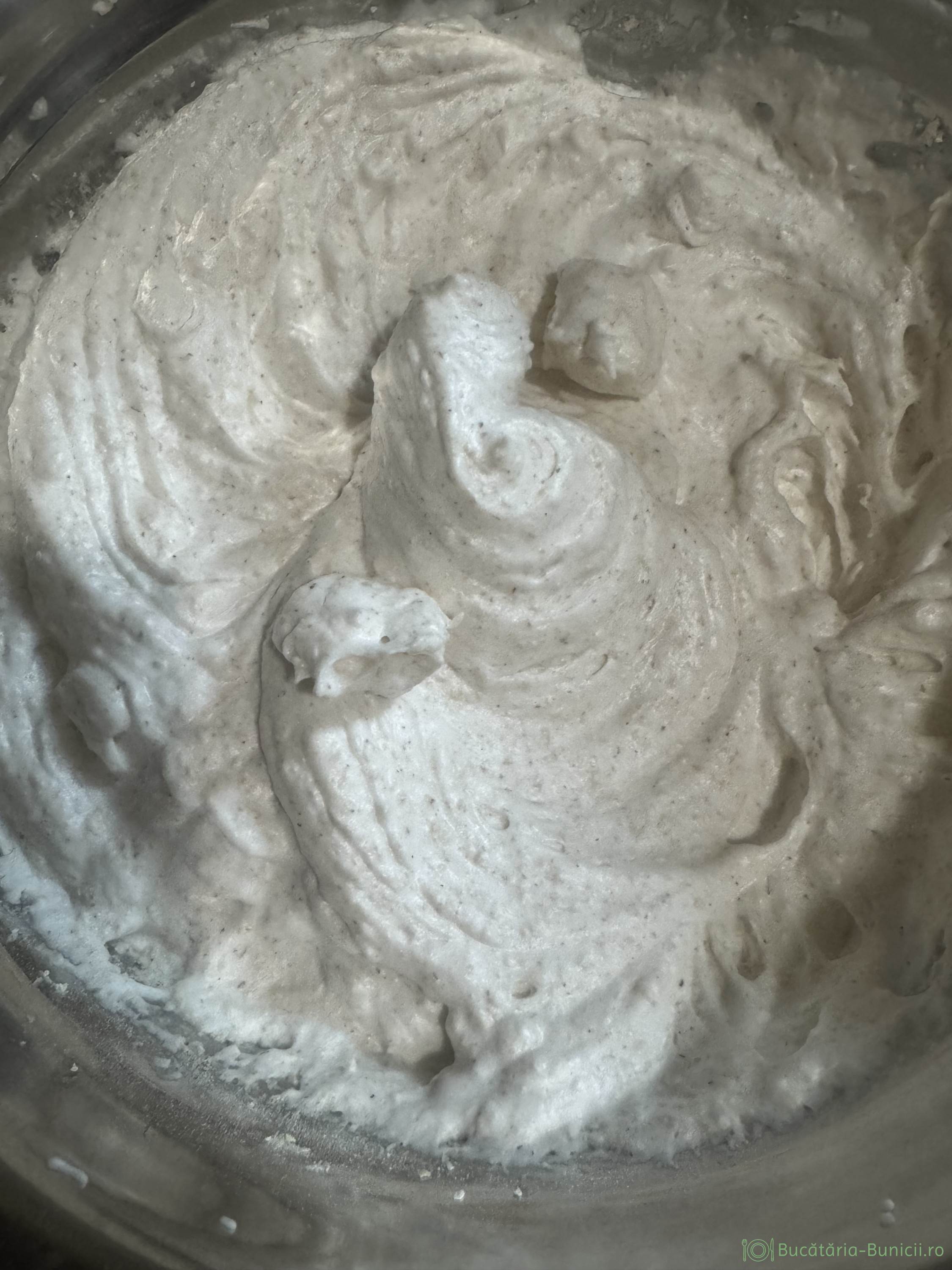 - În bezea se încorporează taratele măcinate, folosind mixerul la viteza cea mai mică.