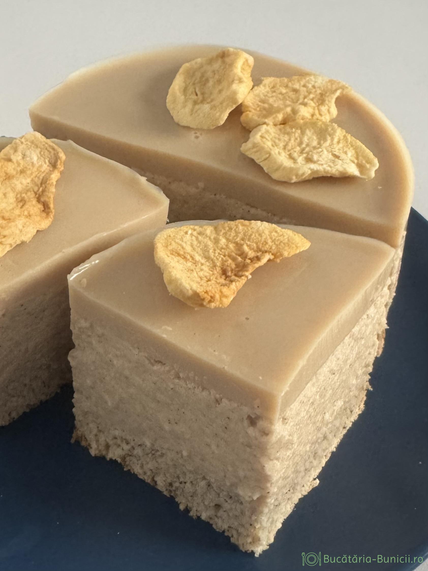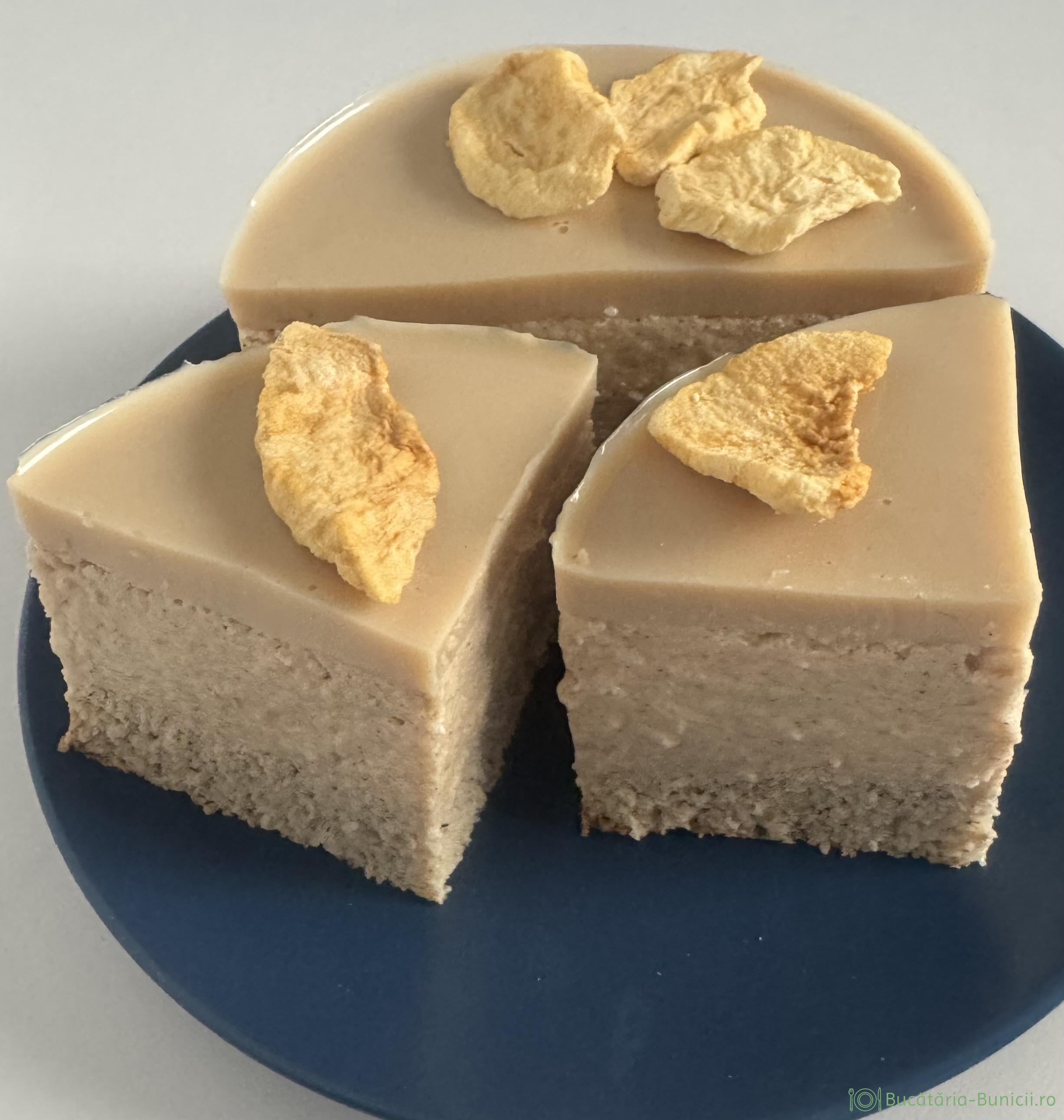 - Se îndepărtează inelul și folia, iar opțional se decorează cu felii de măr uscate, sau liofilizate.