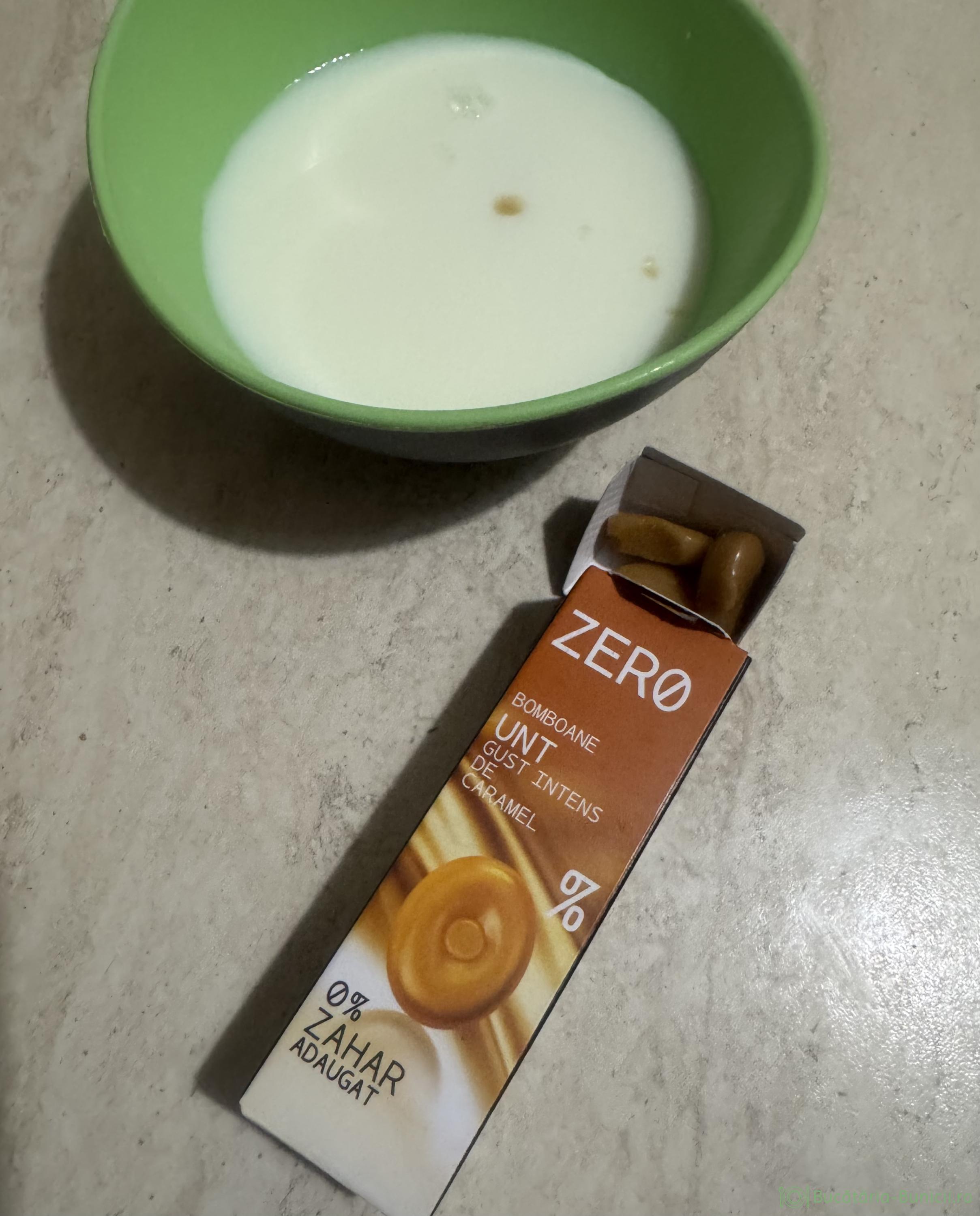 - Într-un vas punem 100 ml lapte și cele 12 bomboane fără zahăr, cu gust de caramel. Acestea conțin și unt, dar cantitatea este aproape nesemnificativă, iar în dieta Dukan 10 g unt înlocuiește 1 lingură ulei de măsline, deci este permis din croazieră.