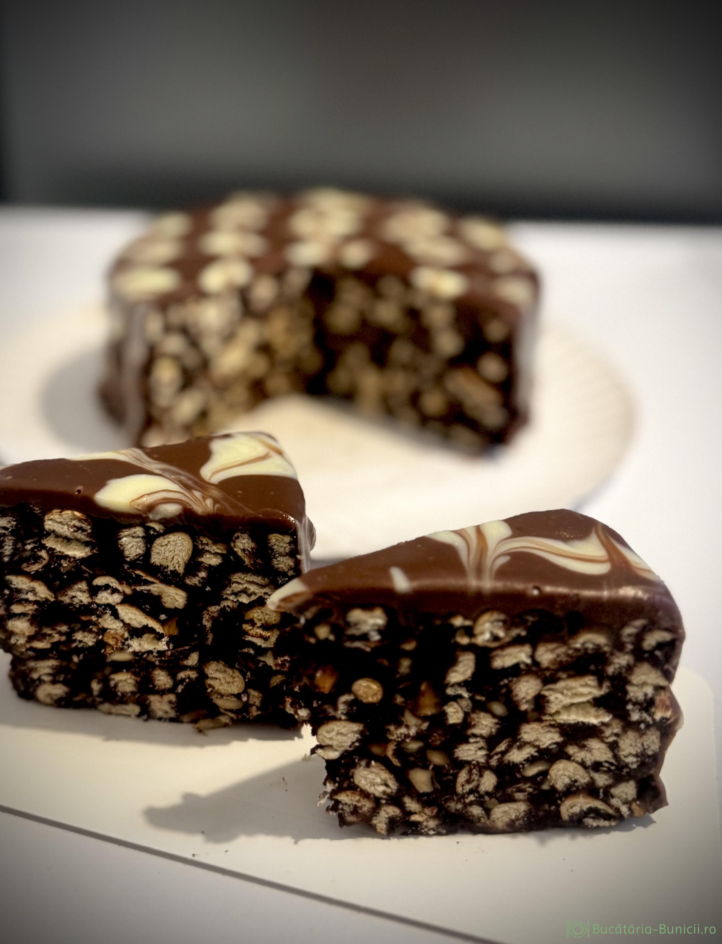- Se dă la rece, dar nu la frigider, măcar 12 ore, timp în care biscuiții absorb din sosul de cacao și se înmoaie.