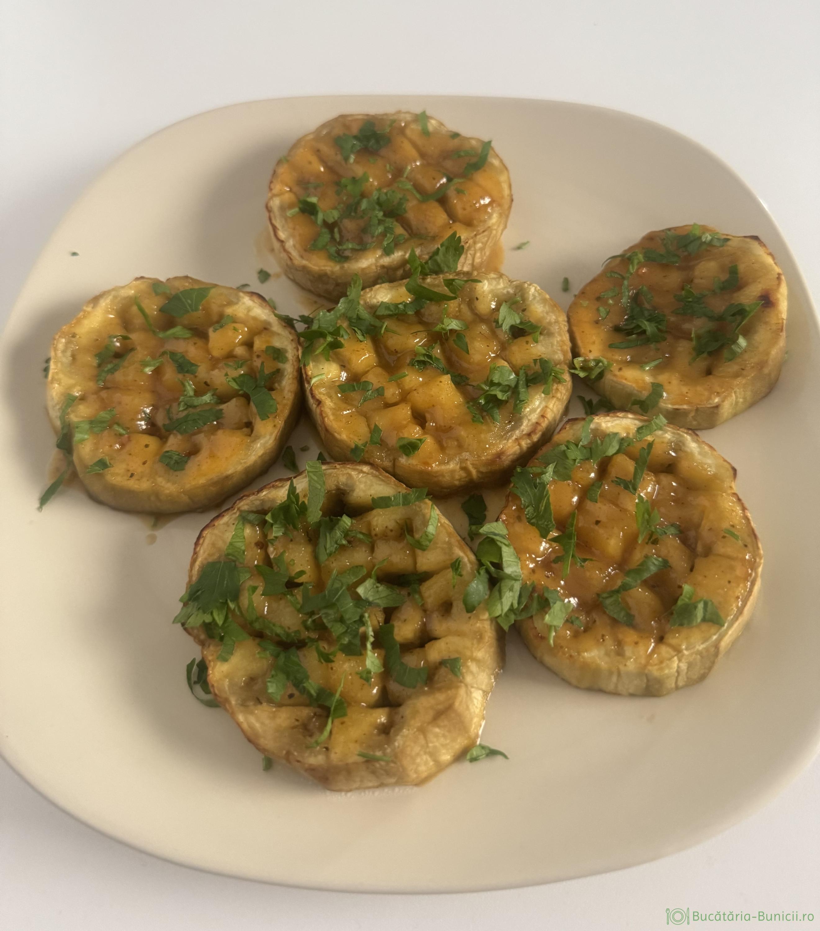- Se scot din cuptor și se presară pătrunjel verde.